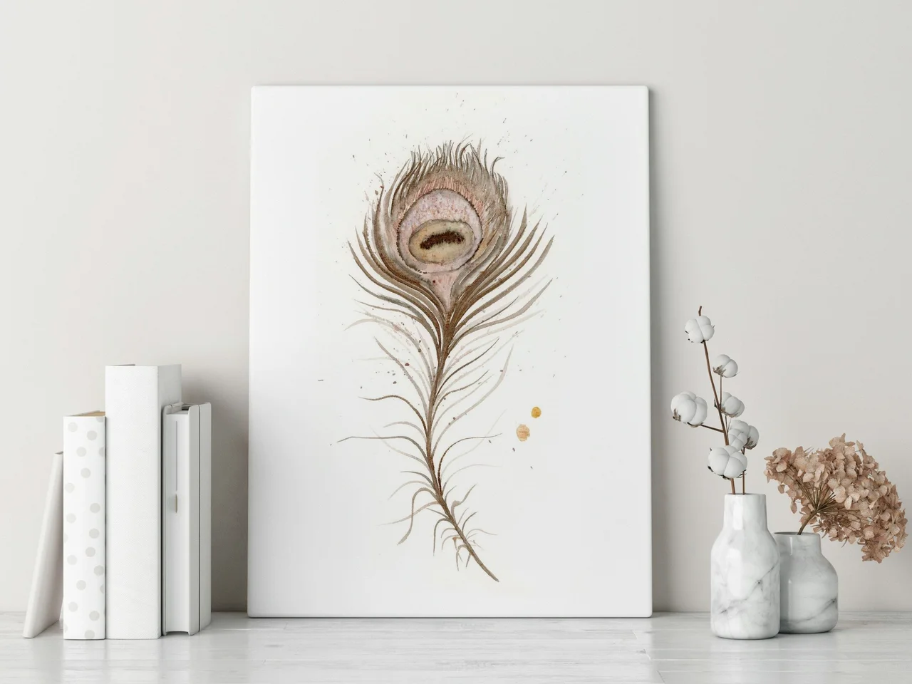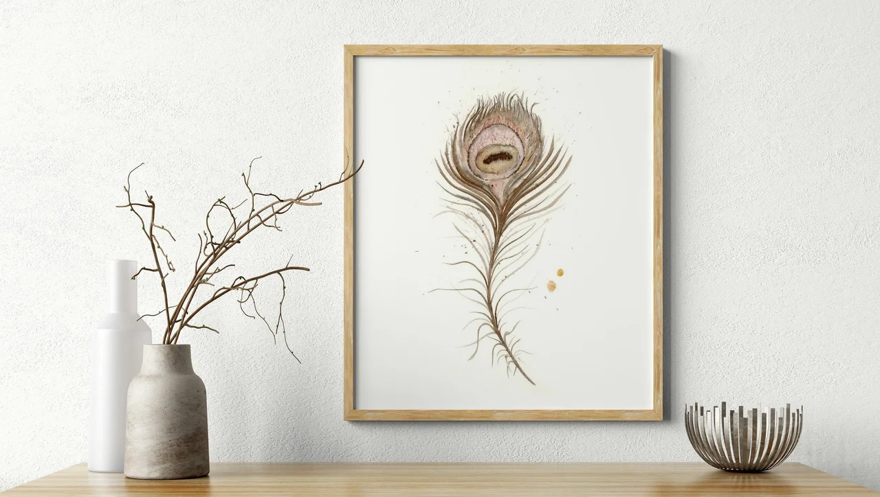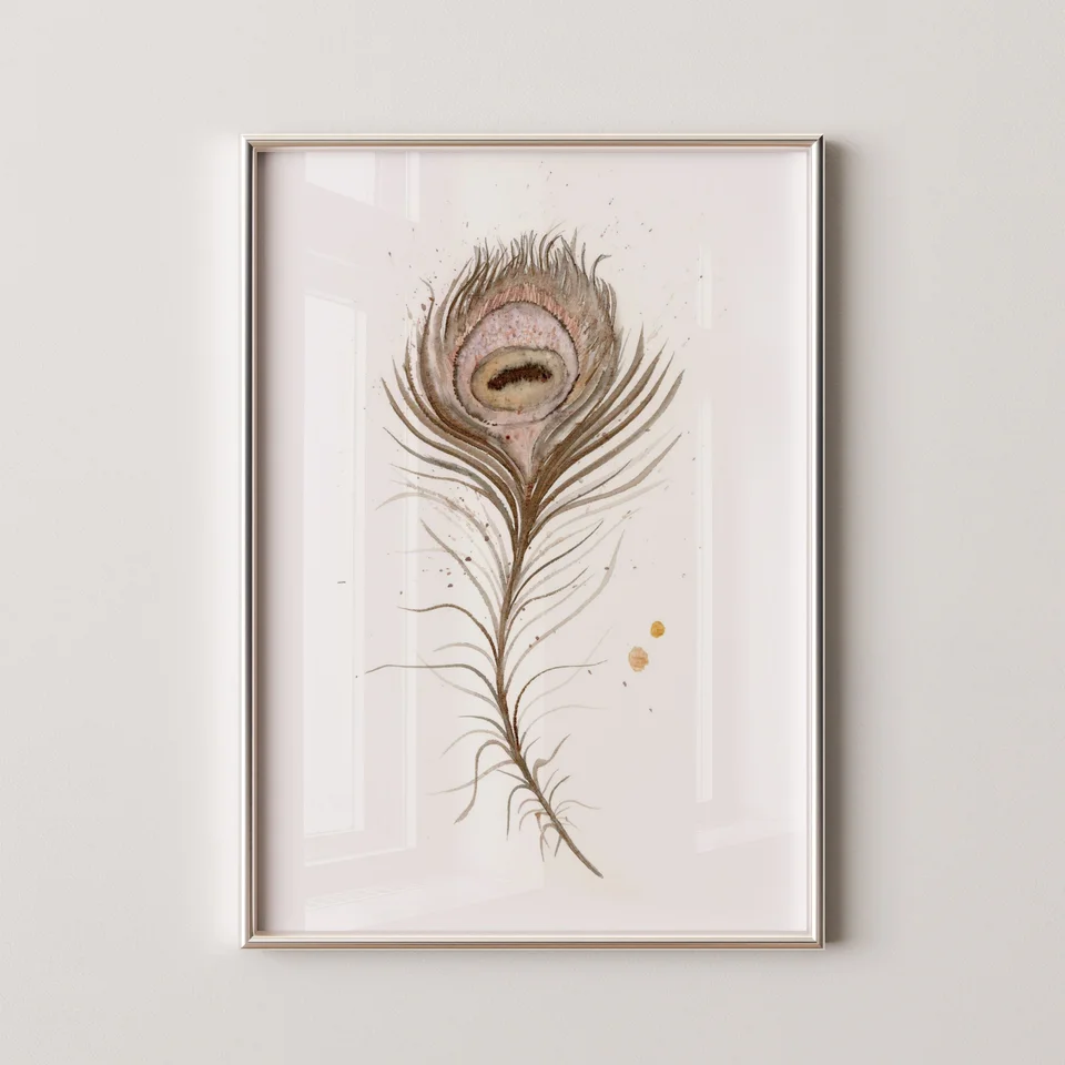 I chose a palette featuring my hand-made pigment, Rocky Mountain #6, to create earthy and calming tones in this piece. With delicate brushstrokes, I layered soft browns and gentle creams, allowing the curves of the feather to flow naturally and bring a sense of tranquility to the viewer. As the feather takes shape, subtle splatters and soft edges come together, crafting an experience that invites a gentle, soothing energy without needing words to convey it. — Shayna, September 2023