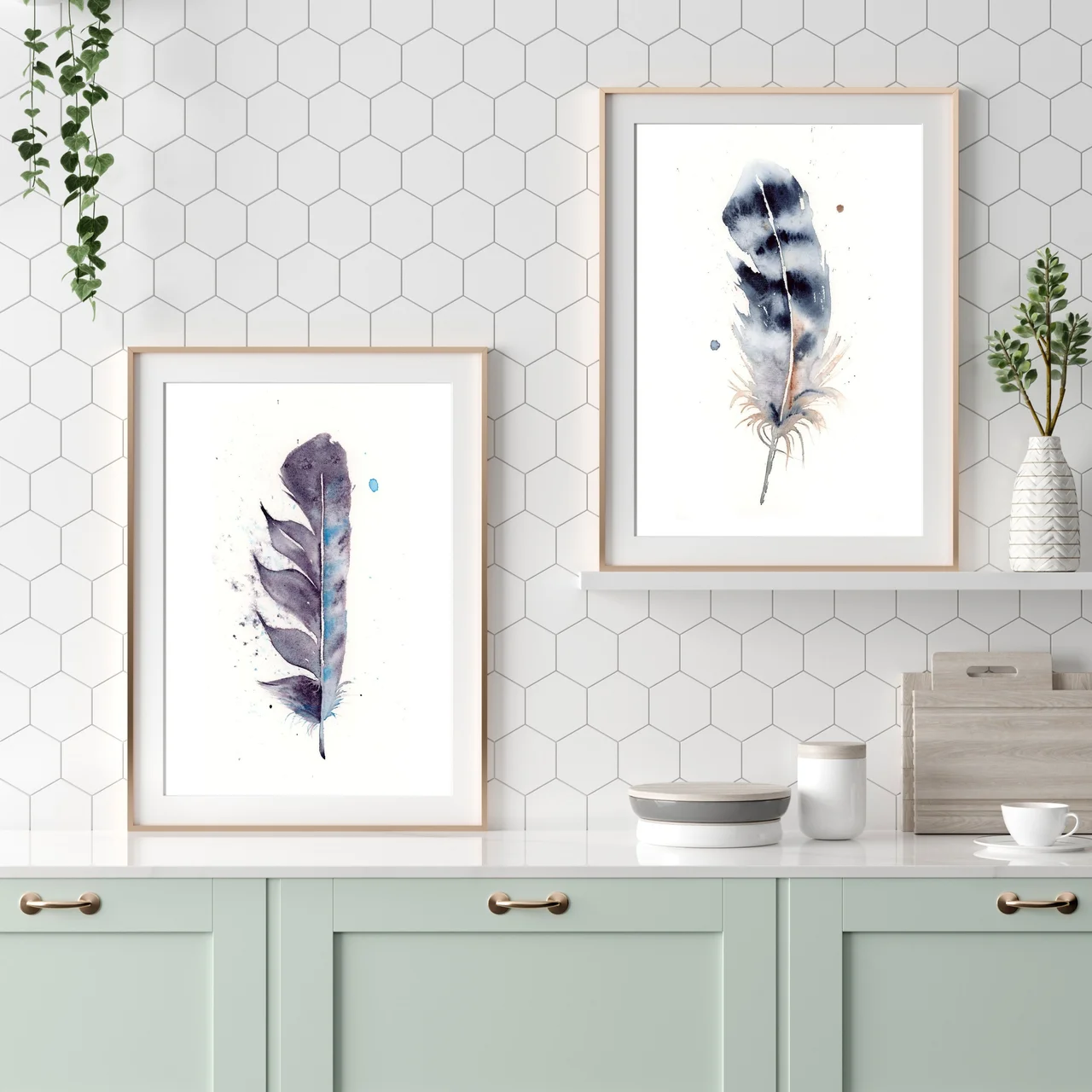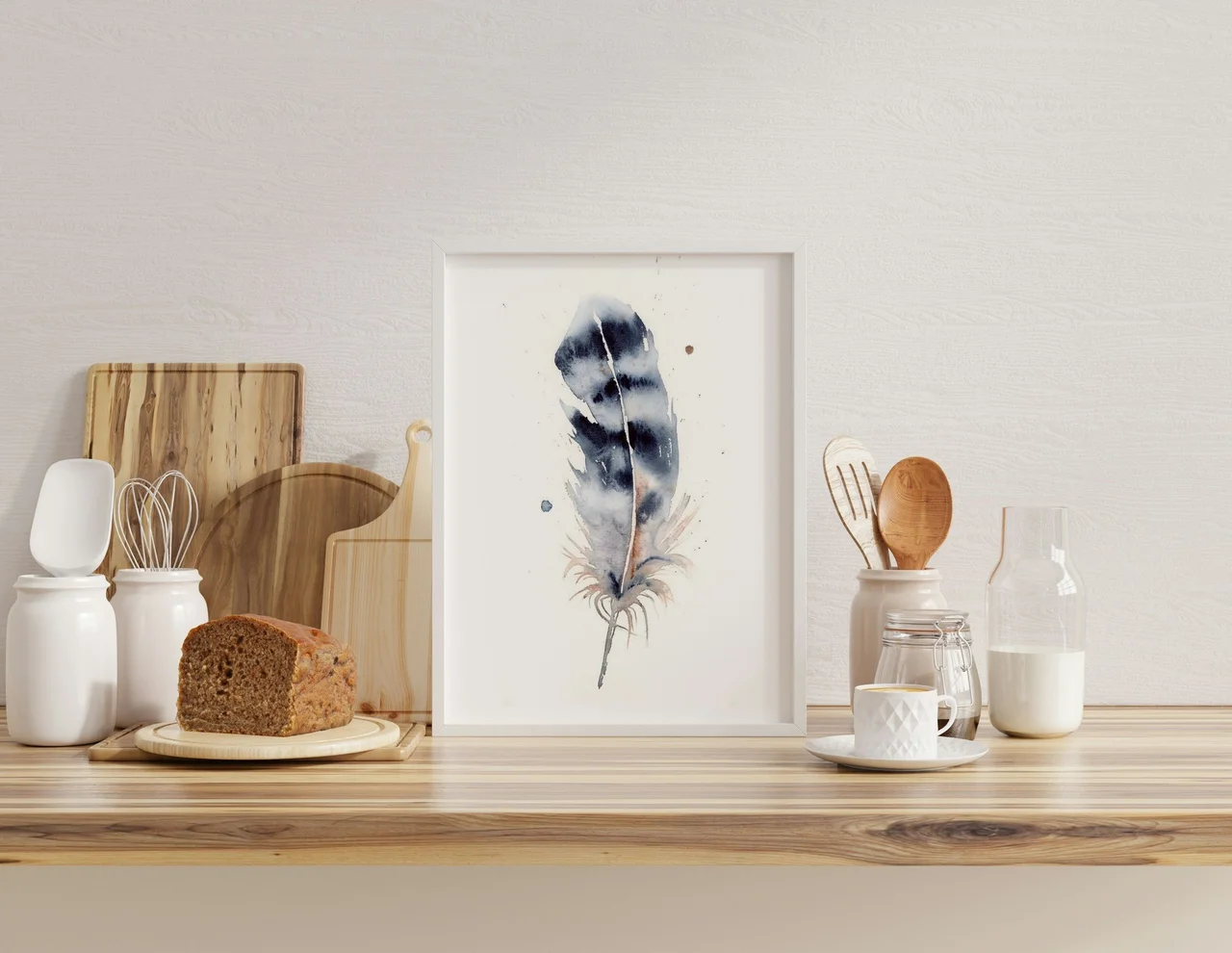 I poured my heart into creating this piece, using the hand-made pigment, Rocky Mountain #6, to capture the delicate interplay of soft blues and earthy browns. The brushstrokes flow from dark to light, with subtle transitions and gentle splatters that mimic the organic beauty of nature. Through this feather, I hoped to evoke a sense of deep reflection and connection to something quietly profound. — Shayna, October 2023