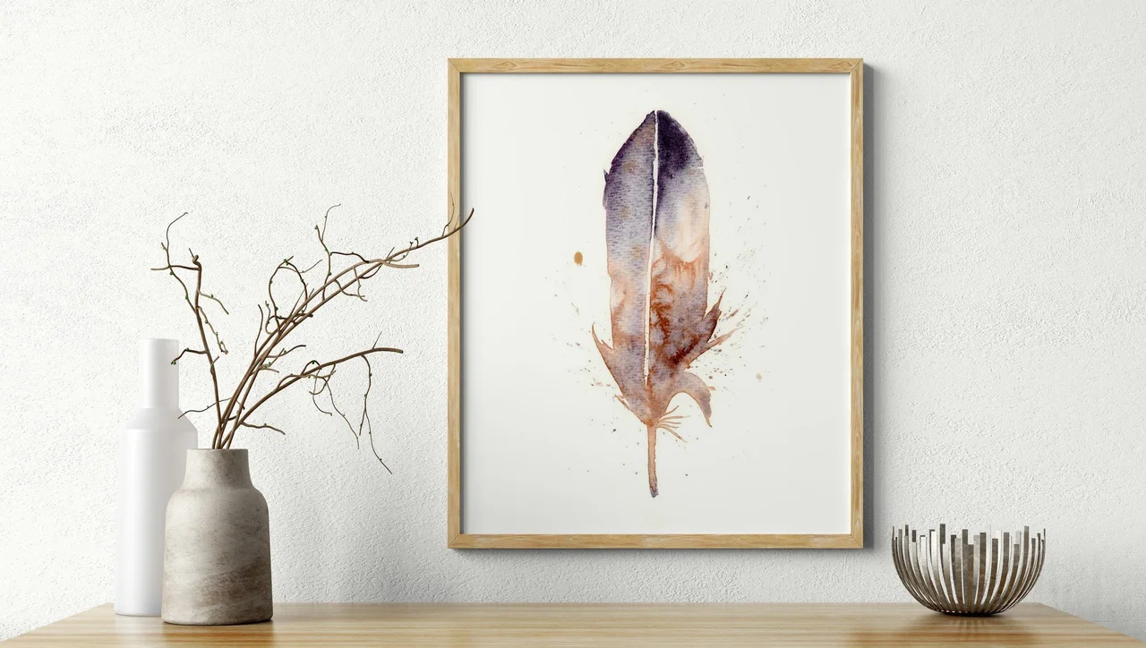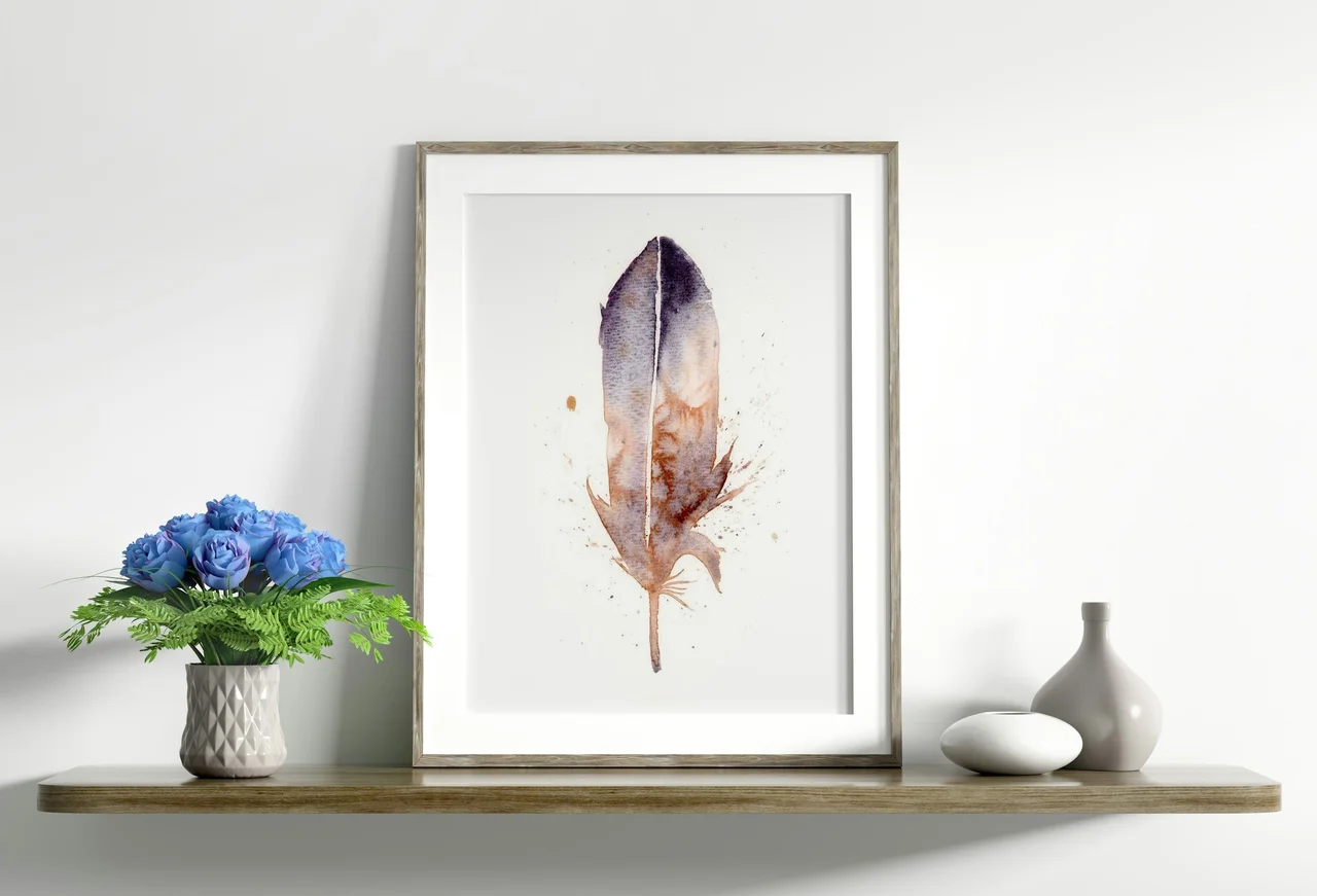 In this painting, I embraced the gentle, earthy tones of my hand-made pigment, Rocky Mountain #6, to create a feather that floats with an air of quiet elegance. The blend of warm browns and soft blues melts seamlessly together, while delicate splatters and subtle drips give the feather a sense of life and freedom. By using gentle transitions and layered brushstrokes, I aimed to craft a piece that speaks of harmony and enduring bonds, inviting you to find peace in its simplicity. — Shayna, October 2023