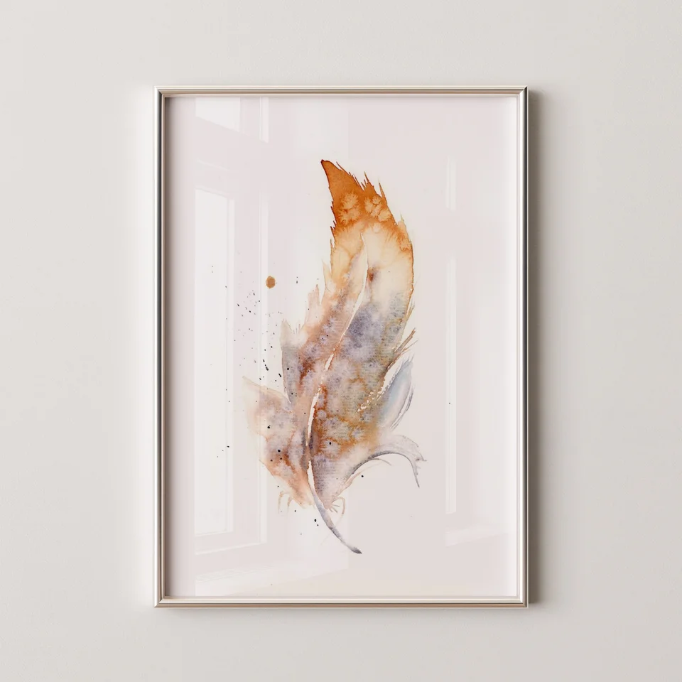 In this painting, I used warm earth tones and cool grays, blending them seamlessly with soft brushstrokes that give the feather its ethereal quality. The subtle transitions and gentle splatters, crafted with my hand-made pigment Rocky Mountain #6, create a… read more