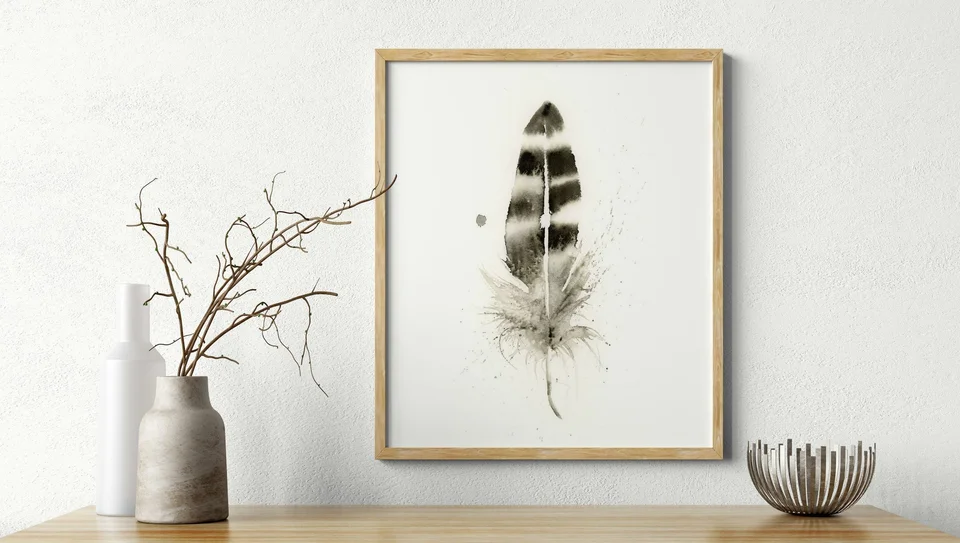 In this painting, I've embraced muted grays and soft blacks, allowing the delicate layers to create a sense of lightness and airiness. By using gentle brushstrokes and subtle splatters, I aimed to impart a feeling of grace and calm. The feather's fluid shape and the soft transitions at its edges remind us of fleeting memories and the gentle passage of time, inviting a sense of tranquility and reflection. — Shayna, October 2023