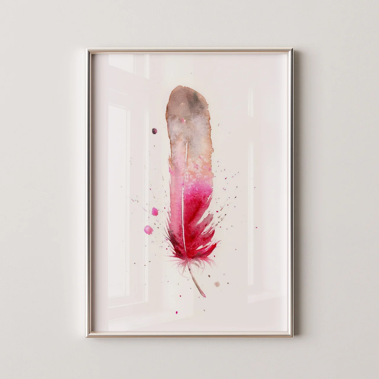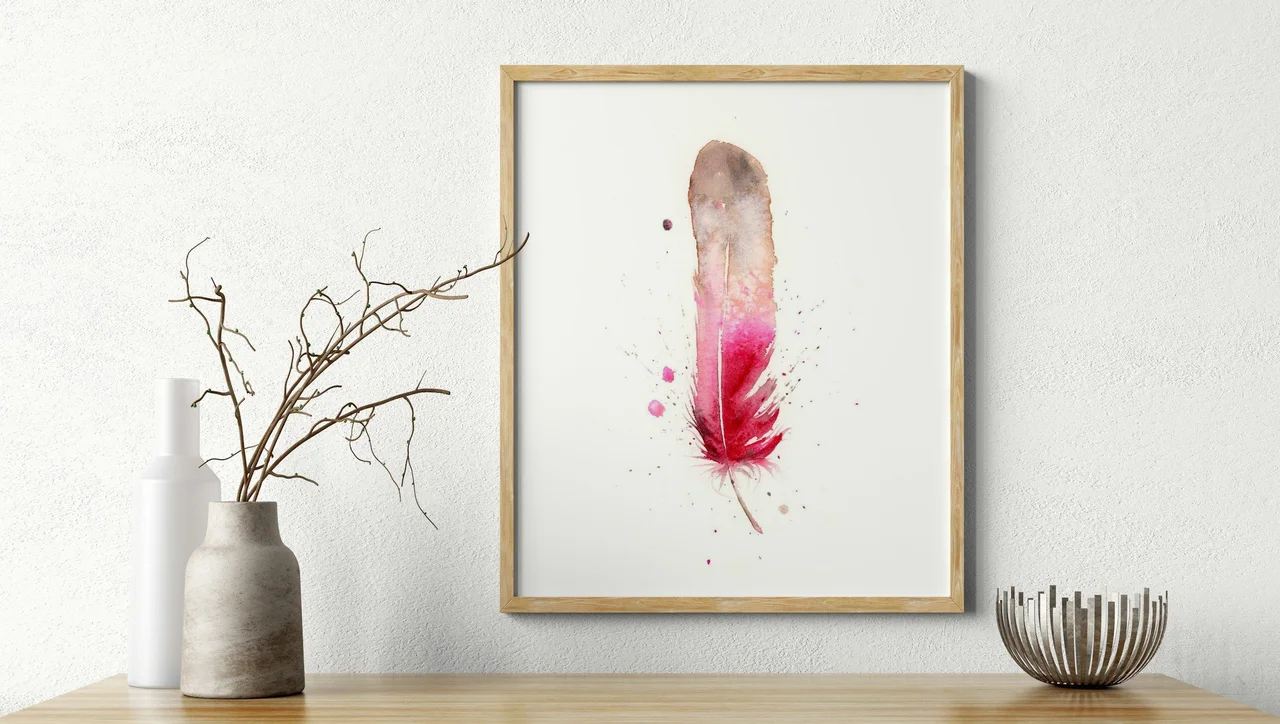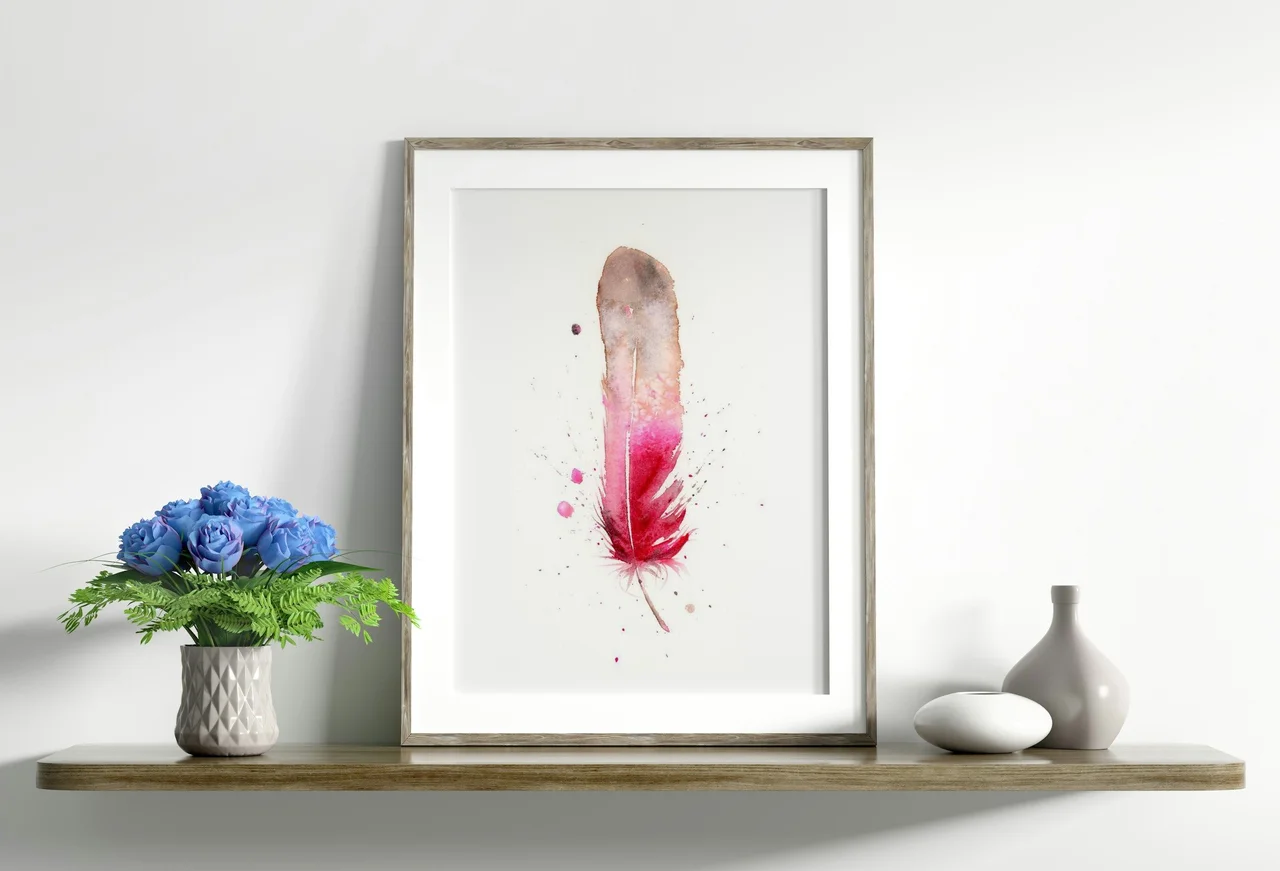 In creating this piece, I embraced the delicate dance of watercolor to shape the feather's ethereal form. The colors transition smoothly from soft grays to rich reds, creating a gentle yet striking contrast. I allowed splatters and drips to find… read more