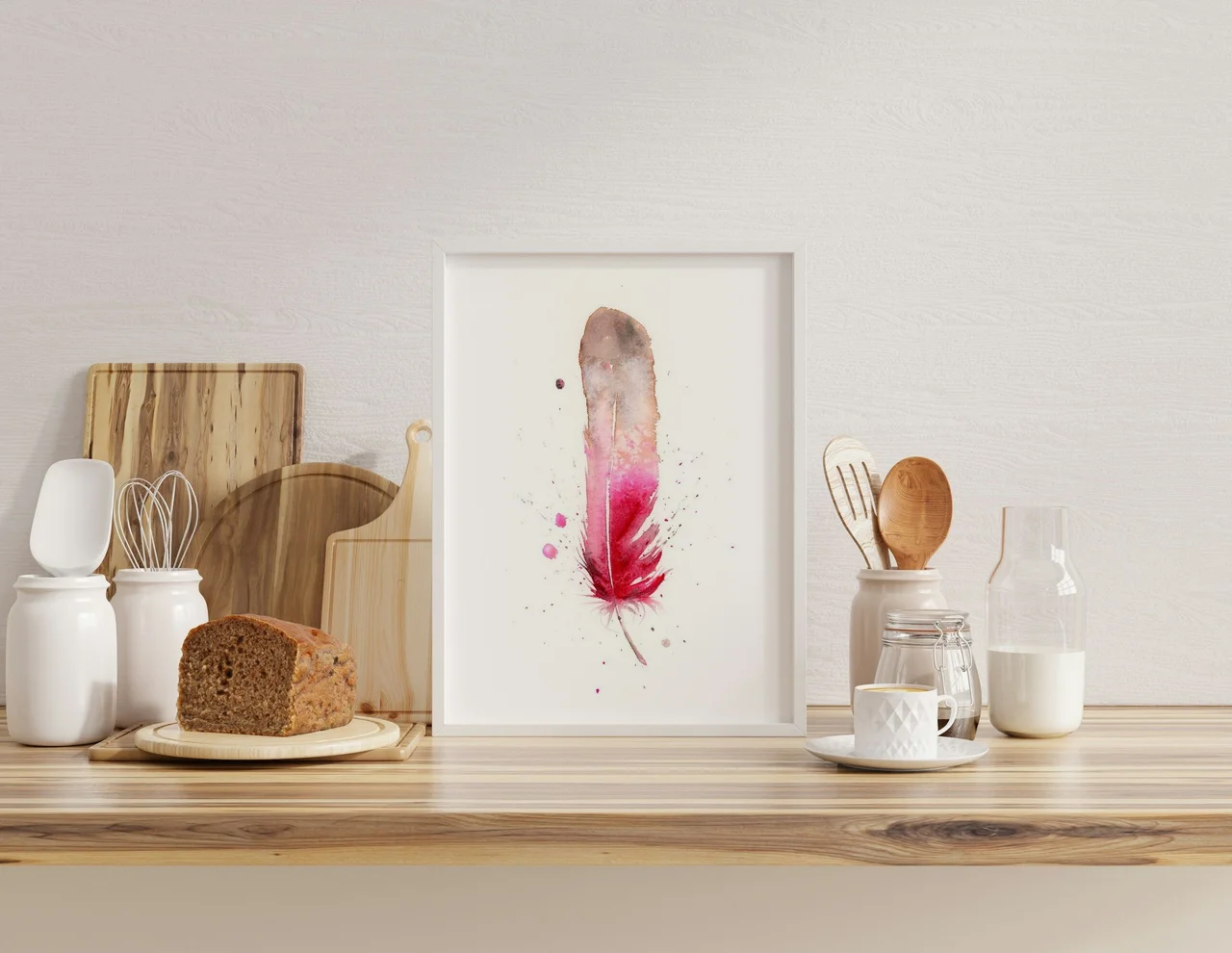 In creating this piece, I embraced the delicate dance of watercolor to shape the feather's ethereal form. The colors transition smoothly from soft grays to rich reds, creating a gentle yet striking contrast. I allowed splatters and drips to find their place naturally, capturing a sense of movement and subtle guidance, as if whispering the quiet strength of following one's own path. — Shayna, November 2023
