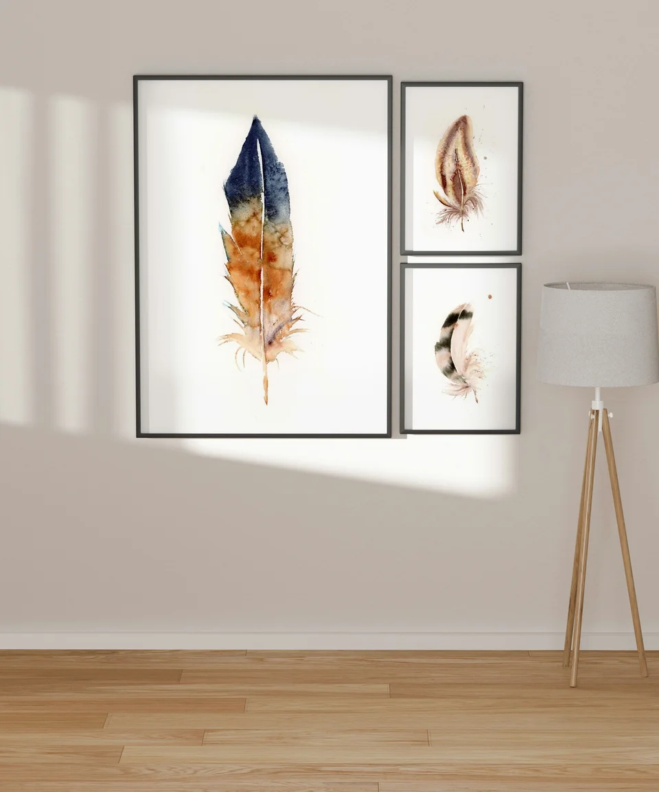 In this painting, I used deep indigos and warm browns to create a sense of calm and reliability. I let the watercolor flow naturally, creating soft transitions and delicate drips to mimic the gentle strength of the feather. Each brushstroke… read more