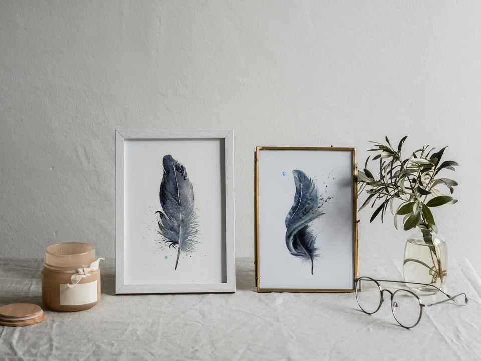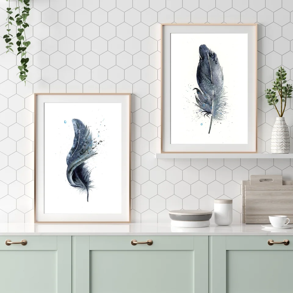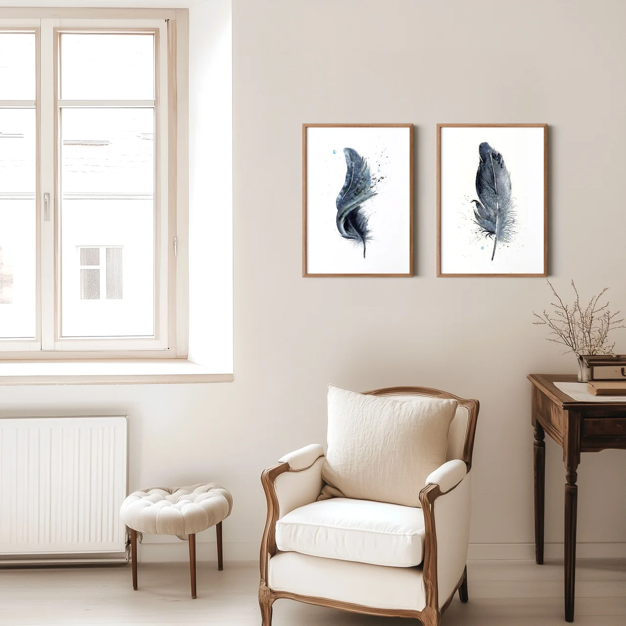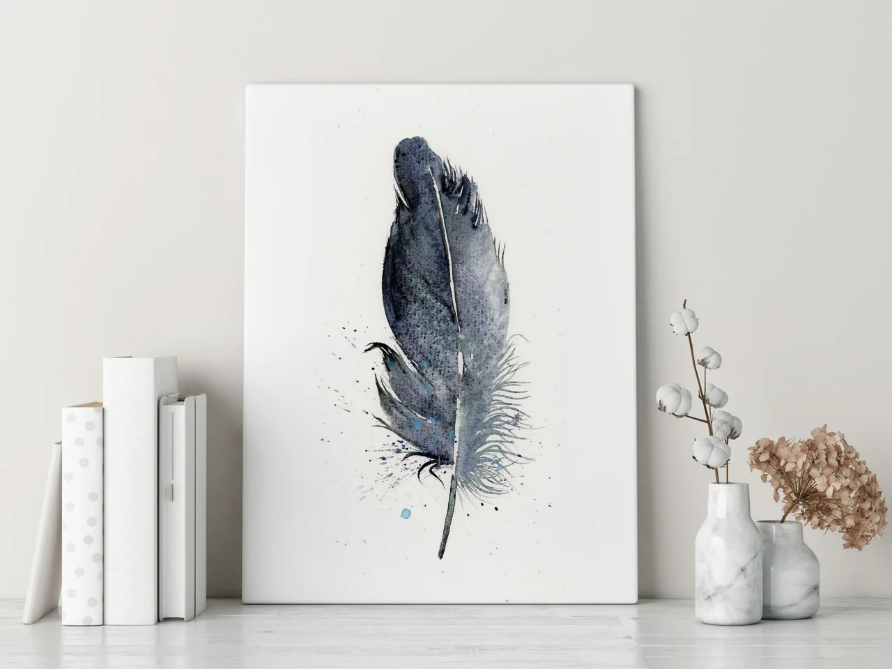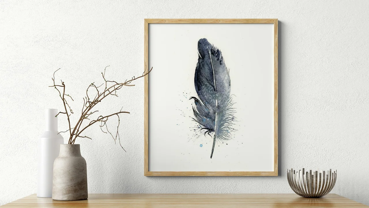 In this painting, I chose deep blues and soft grays to craft the feather’s delicate texture, contrasting with the crisp white background for emphasis. I used loose, flowing brushstrokes to capture its organic shape, allowing the subtle splatters and drips… read more