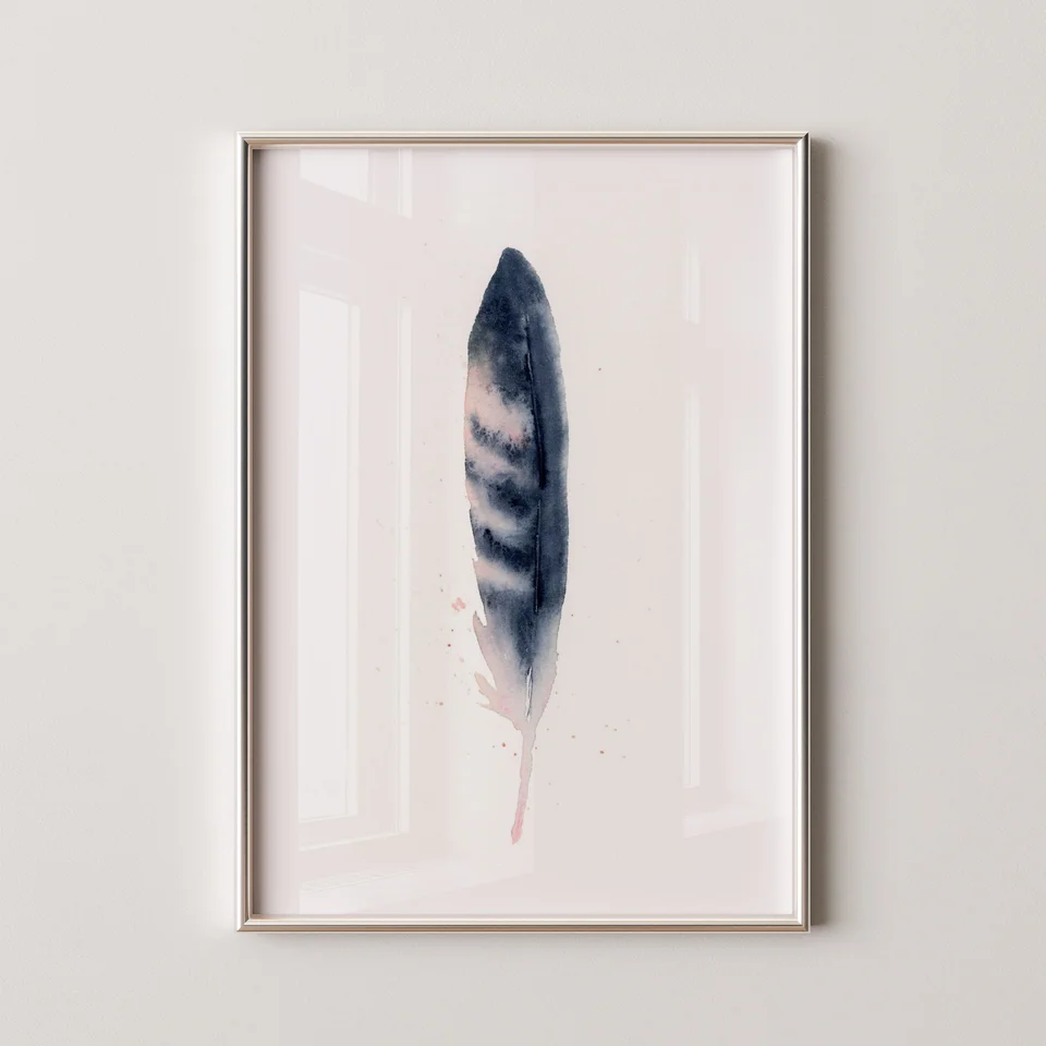 In this piece, I used a serene blend of deep indigos and soft pinks to create a sense of calm and assurance. The watercolor transitions gently, allowing colors to bleed into each other, while the delicate feather shape stands bold… read more