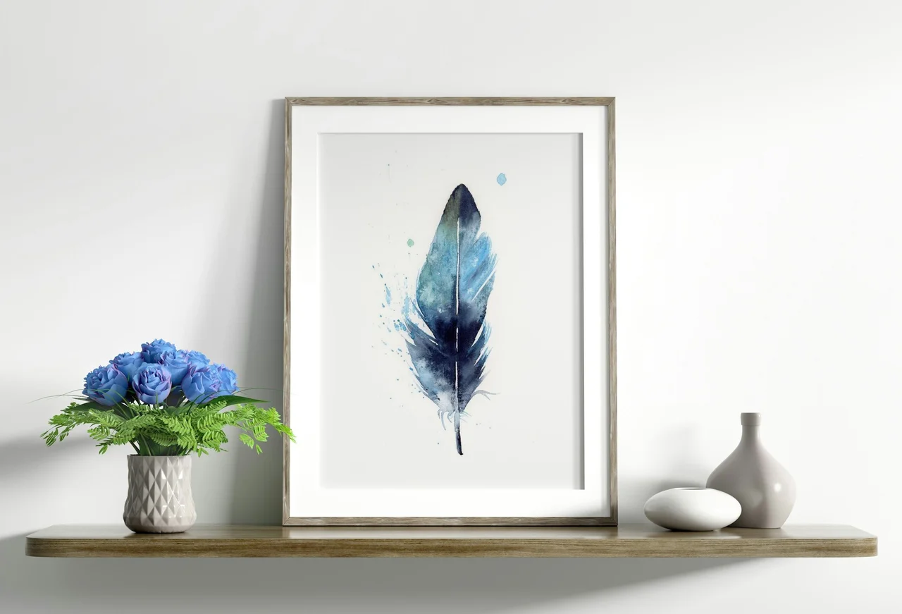 In creating this painting, I embraced the gentle dance of blues and greens, letting them flow effortlessly into one another, capturing the ethereal quality of a feather. With each brushstroke, I layered delicate washes that blend into a soft edge, while the specks and drips add a playful spontaneity, bringing life and movement to the piece. My intent was to craft a moment that invites you to pause, feel, and experience an intimate moment of quiet beauty. — Shayna, November 2023