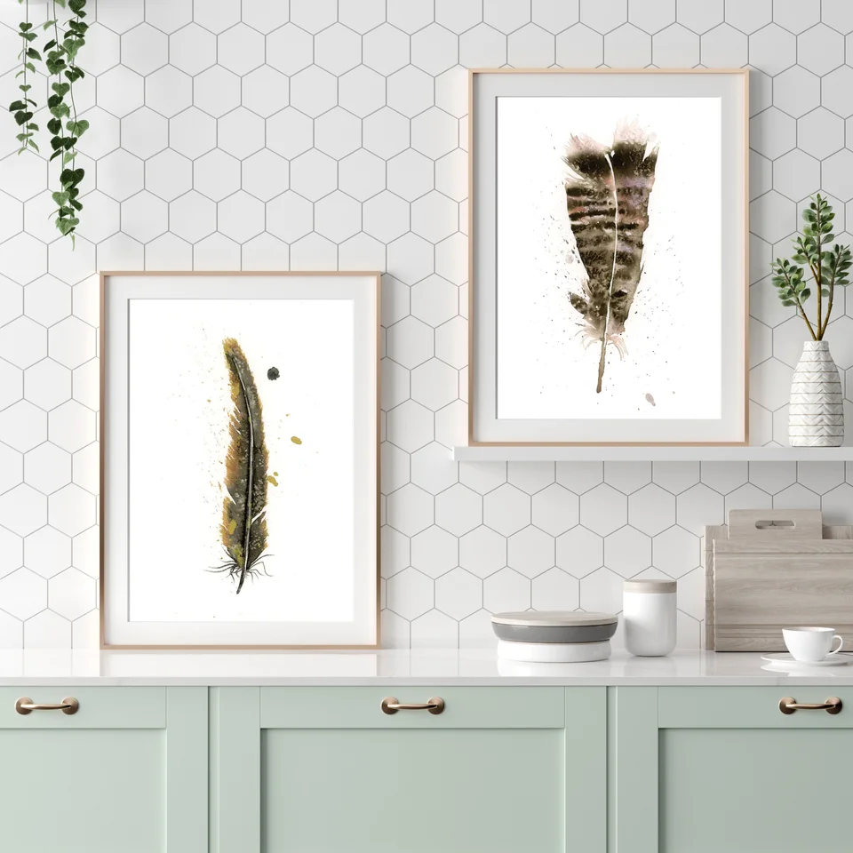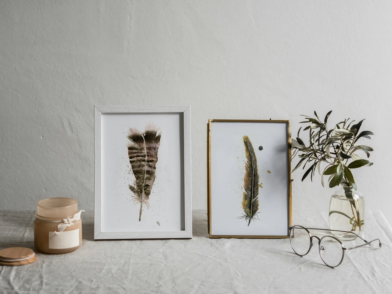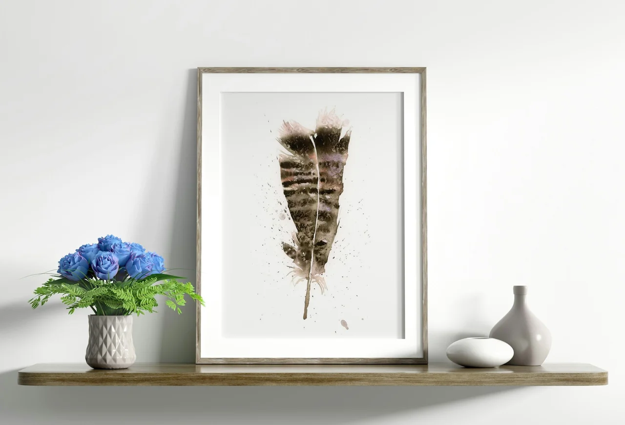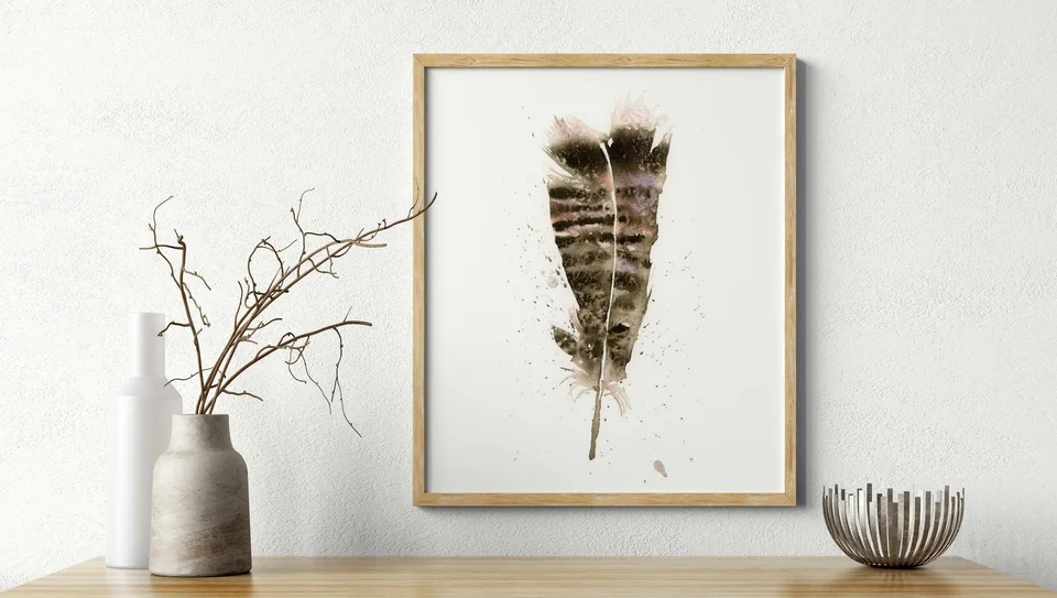 In creating this painting, I chose an earthy palette, blending subtle browns and soft lavenders with delicate washes that seem to whisper across the paper. My brushstrokes vary, moving from controlled, feather-like edges to spontaneous splatters and drips, introducing a sense of gentle motion and rhythm. This interplay of elements allows the piece to breathe, inviting a serene interaction between the natural details and the open space surrounding them. — Shayna, November 2023