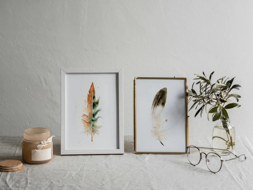 As I painted this feather, I chose warm earth tones and soft greens, allowing them to flow and merge gently. The watercolor technique lets the colors bleed into one another, creating an organic and unrestrained edge, while the background remains clean to highlight the feather’s form. I aimed for balance and intention, using delicate brushstrokes and subtle splatters to express a sense of direction and focus, capturing a fleeting moment in nature. — Shayna, December 2023