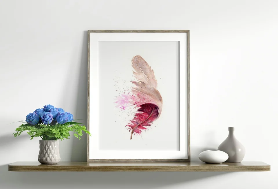 I poured my heart into this piece, using a gentle blend of earthy browns and soft pinks to create depth and texture through subtle transitions and delicate layering. The feather's edges are both tender and defined, capturing movement with splatters… read more