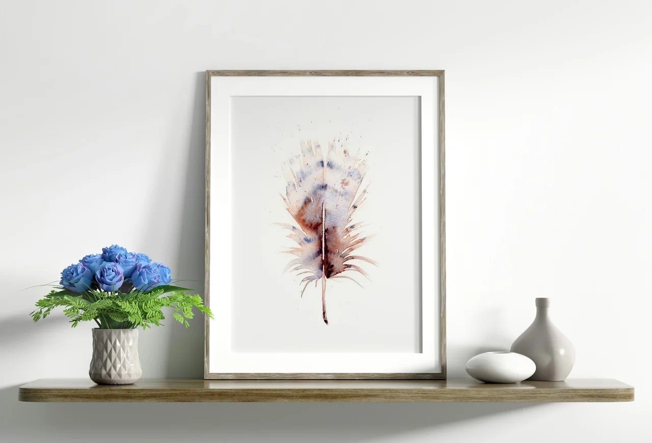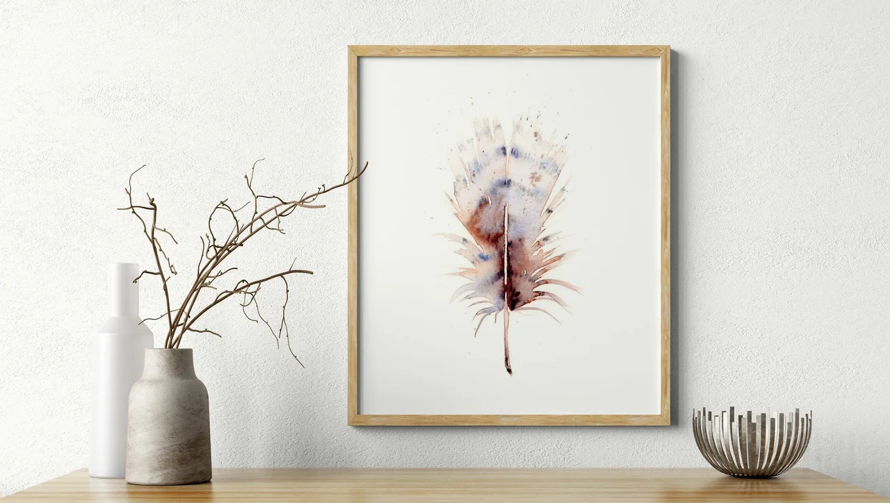 In this piece, I chose soft blues and earthy browns to create a gentle interplay that feels both soothing and grounded. The watercolor transitions are smooth, yet purposeful, with edges that suggest a feather-like softness, letting the colors bleed and mingle naturally. As I layered the paint, subtle splatters and drips added a sense of spontaneity, while the central stem provides a grounding shape that draws the eye, creating a harmonious interaction between movement and stillness. — Shayna, December 2023