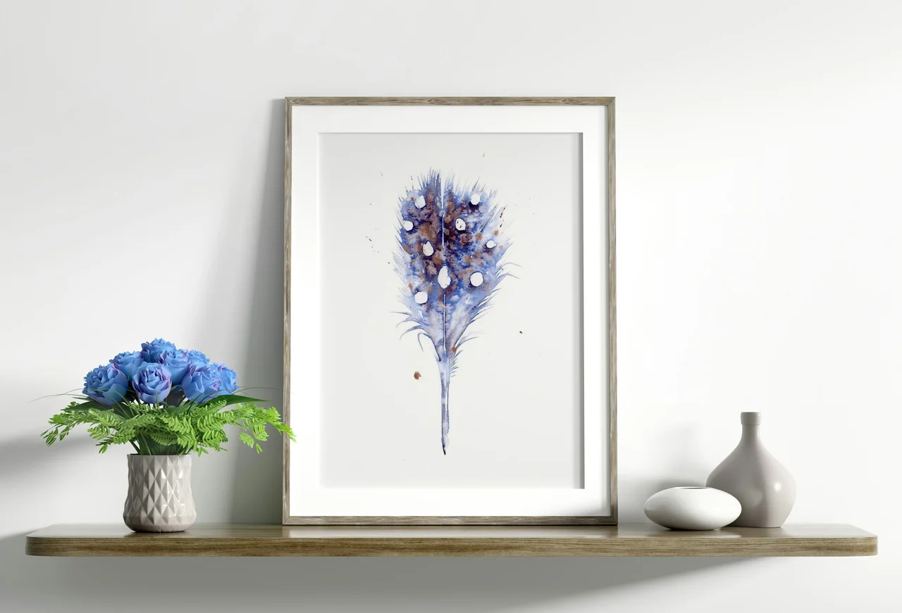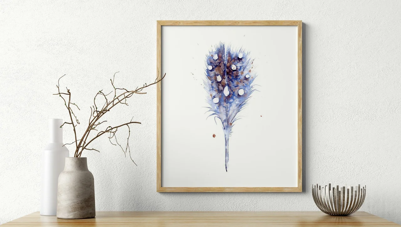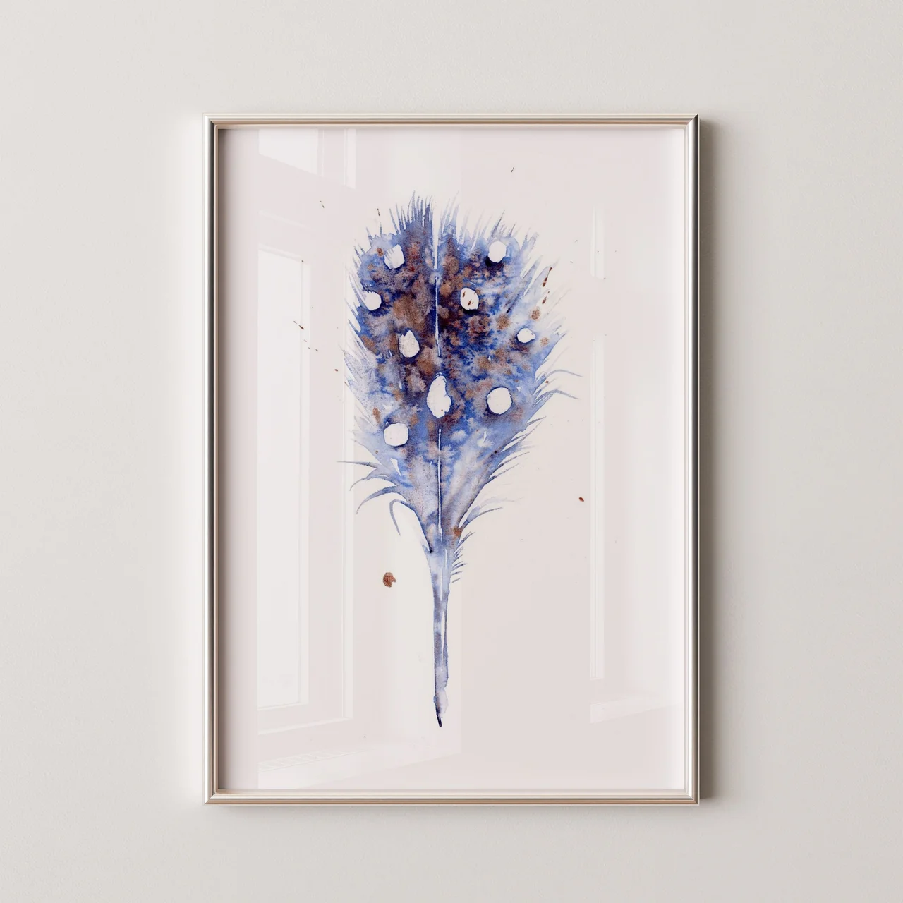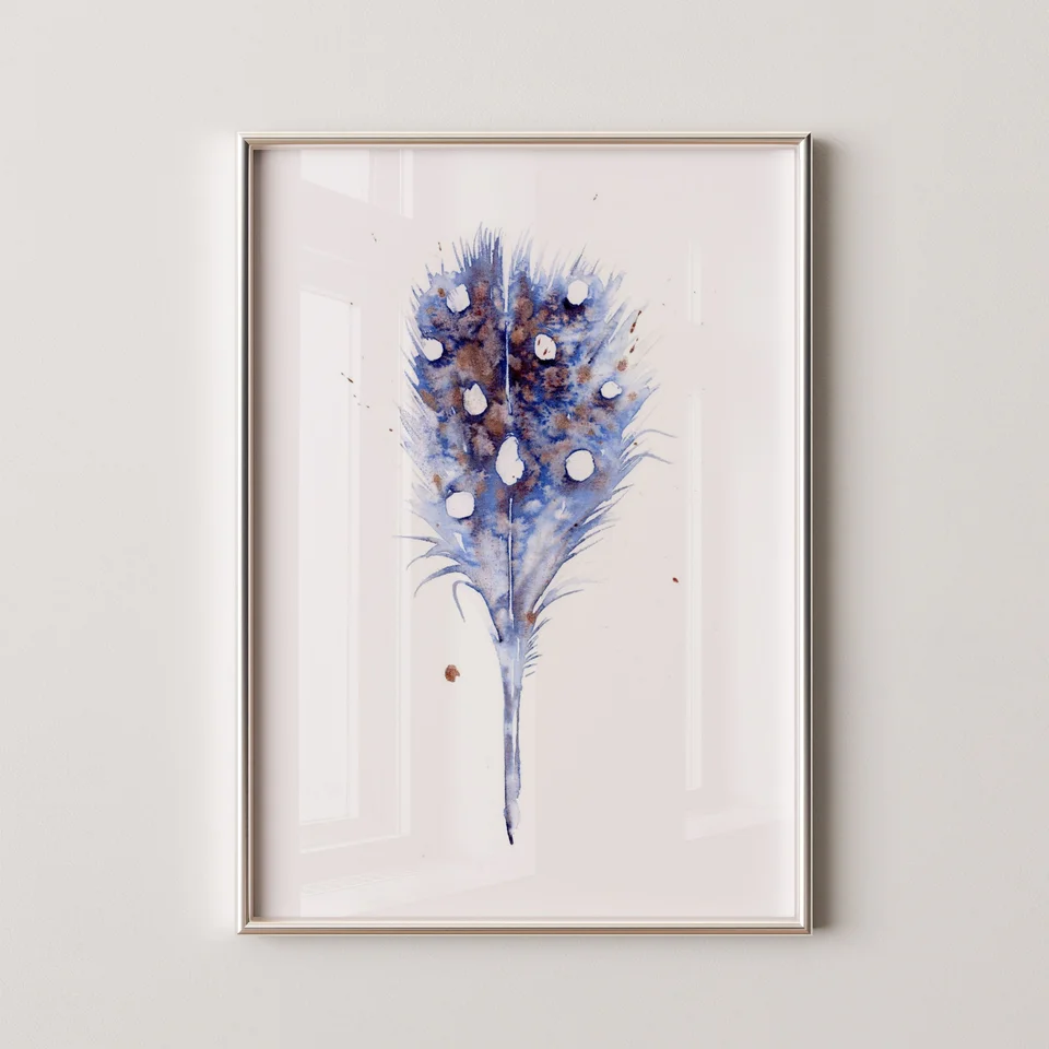 In this painting, I wanted to capture the delicate essence of a feather using soft blues and deep browns that gently blend and contrast with each other. I used light brushstrokes to create subtle transitions in the feather's texture, allowing the watercolor to naturally bleed and form unique patterns. The bold white spots and fine lines give the feather definition, guiding the eye in a way that feels both intentional and serene. — Shayna, December 2023