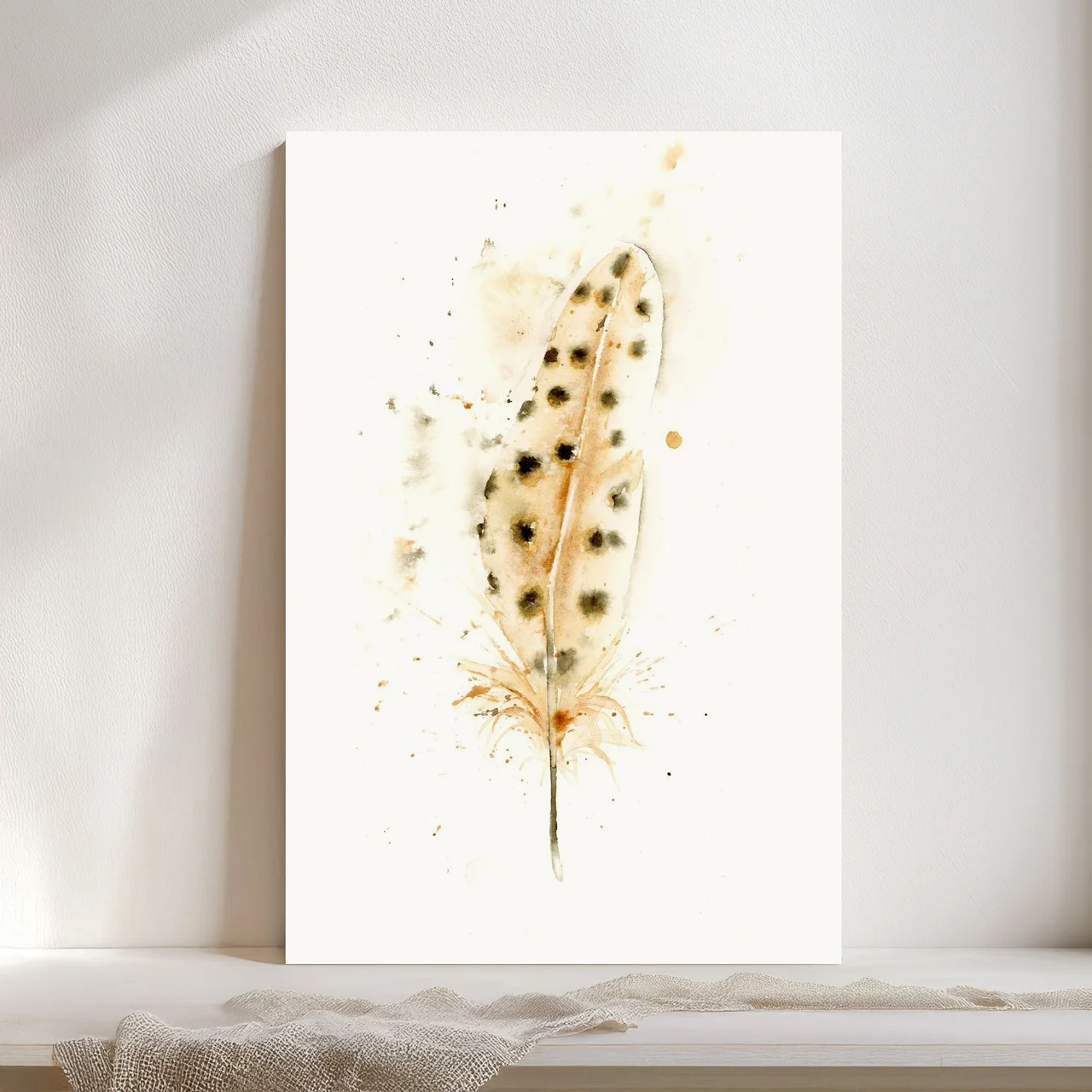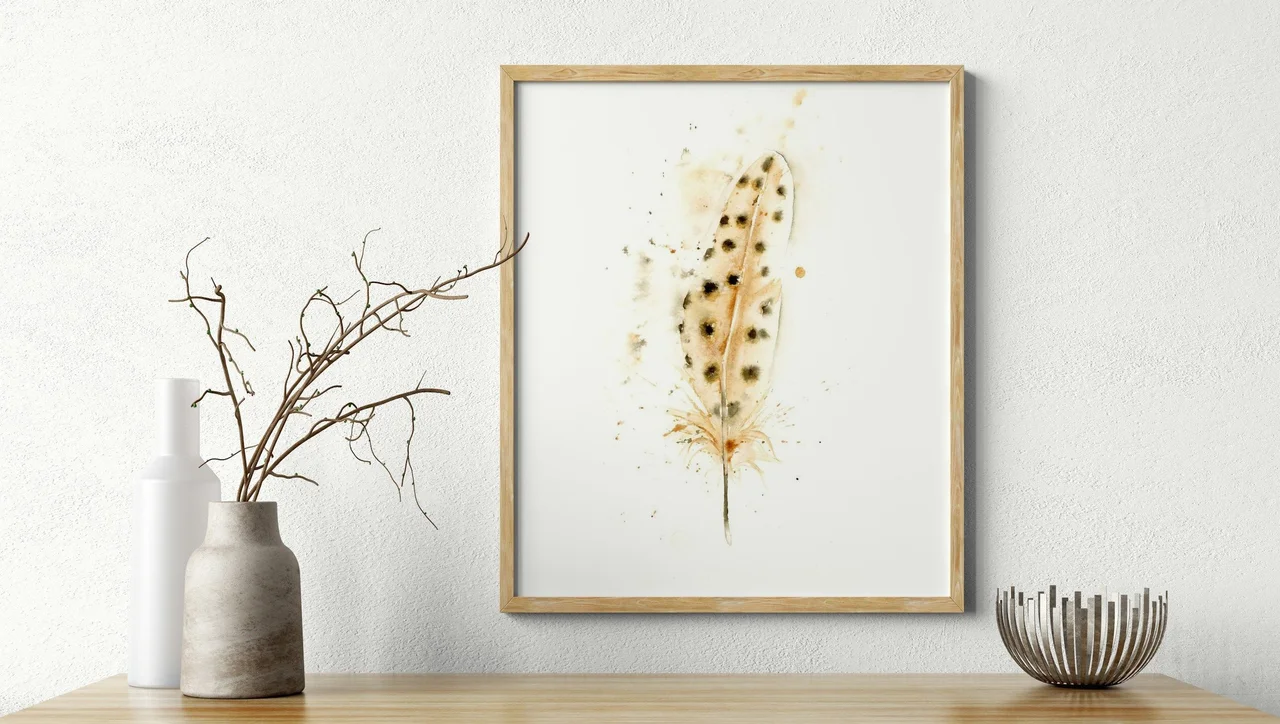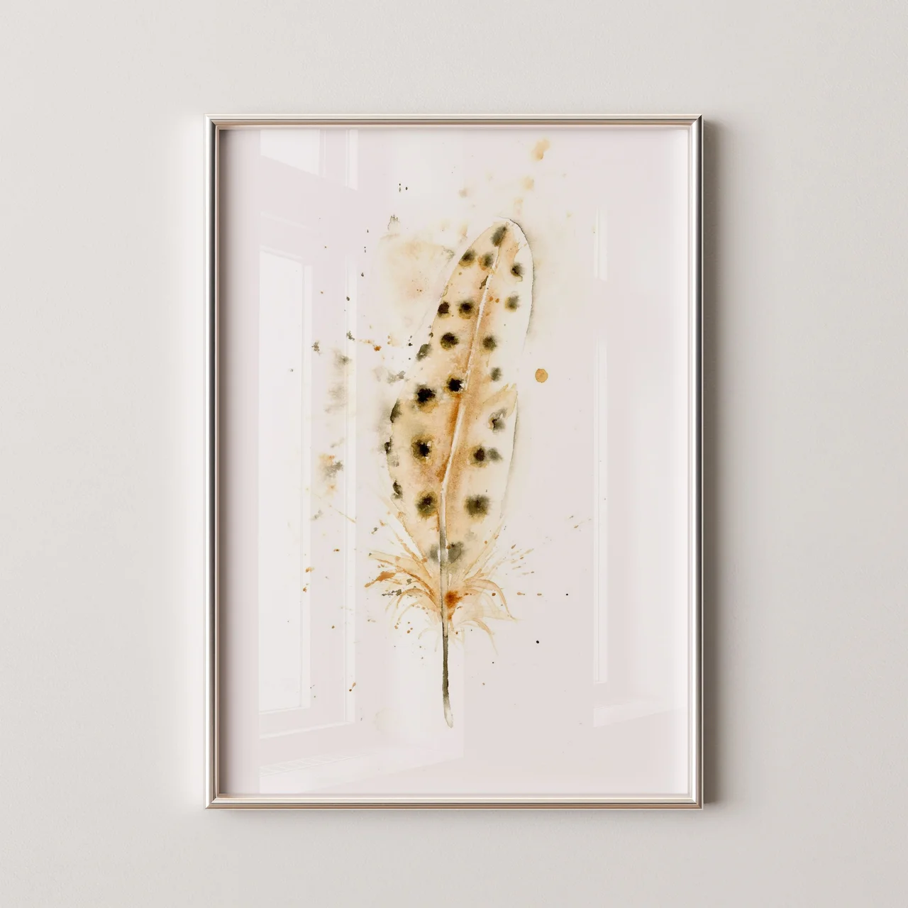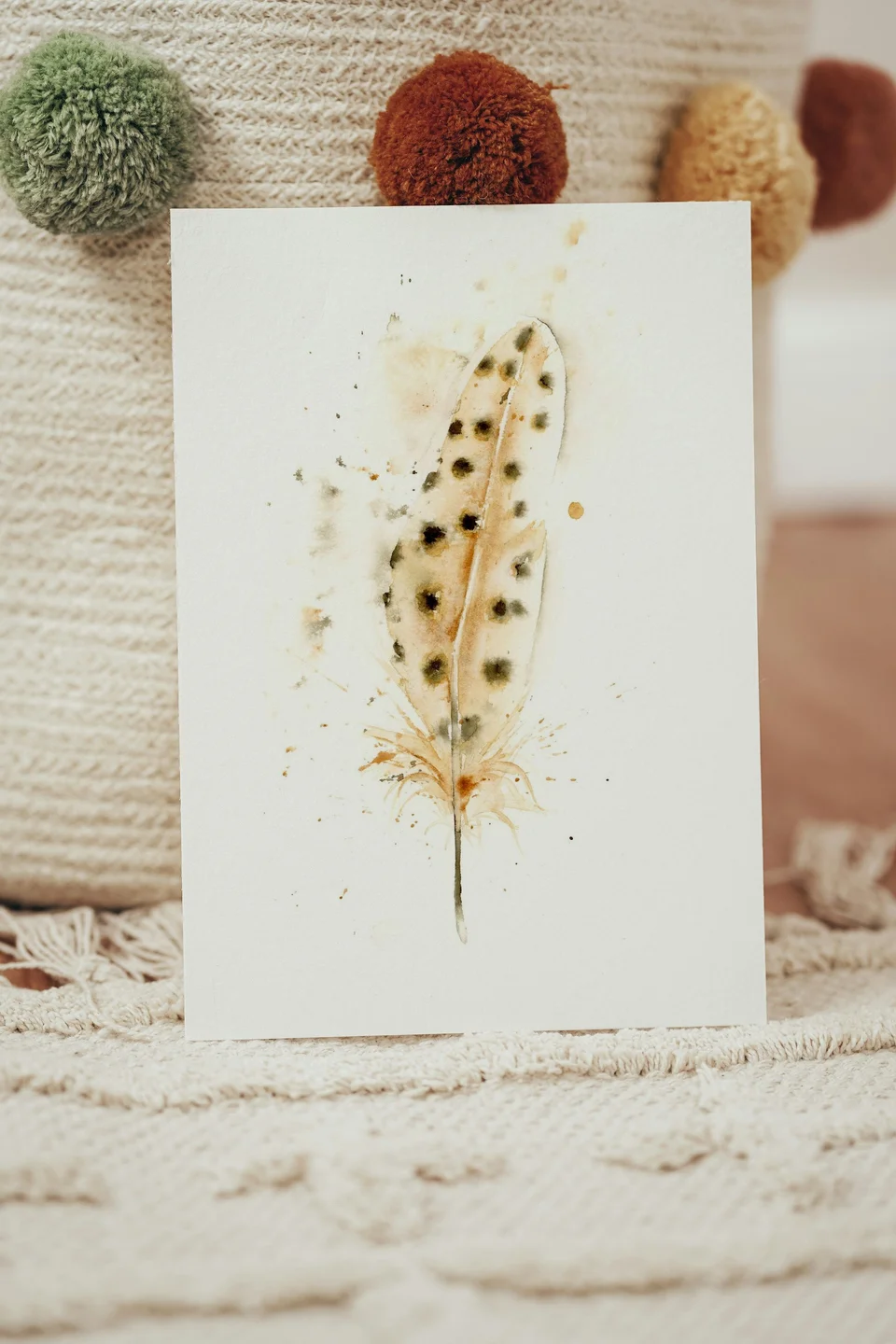 I used gentle strokes and washes of earthy browns with my hand-made pigment, Rocky Mountain #5, to create this feather motif. Each brushstroke transitions softly into the next, with delicate spots that add contrast and character. Through the subtle blend… read more