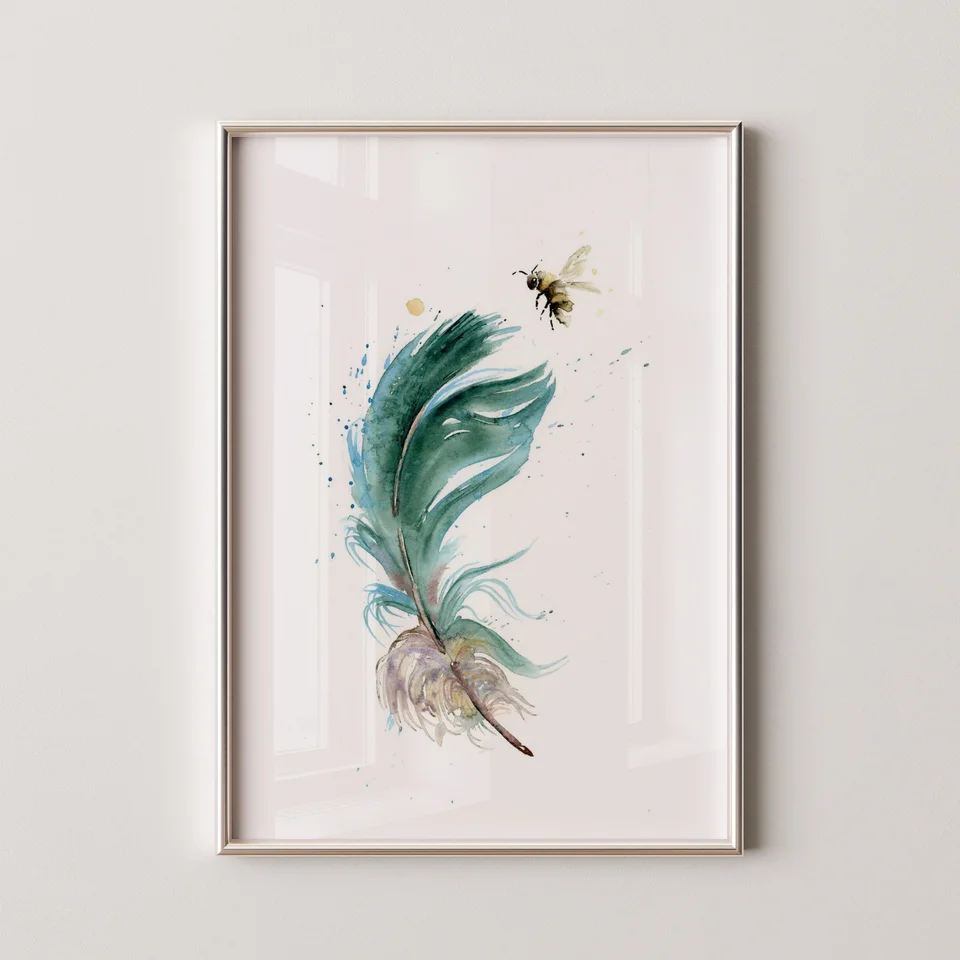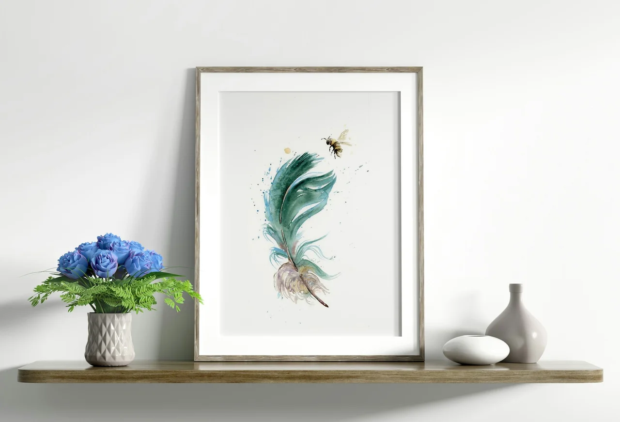 In this painting, I carefully chose soft blues and earthy browns to create a feather that dances lightly on the canvas, complemented by the gentle presence of a bee. With delicate brushstrokes and thoughtful splashes, I aimed to capture the… read more
