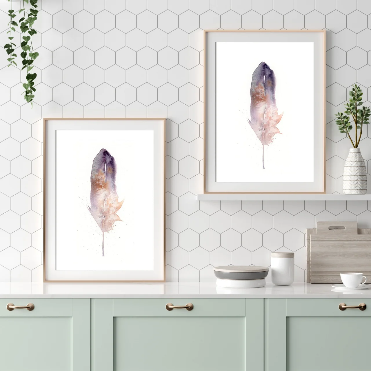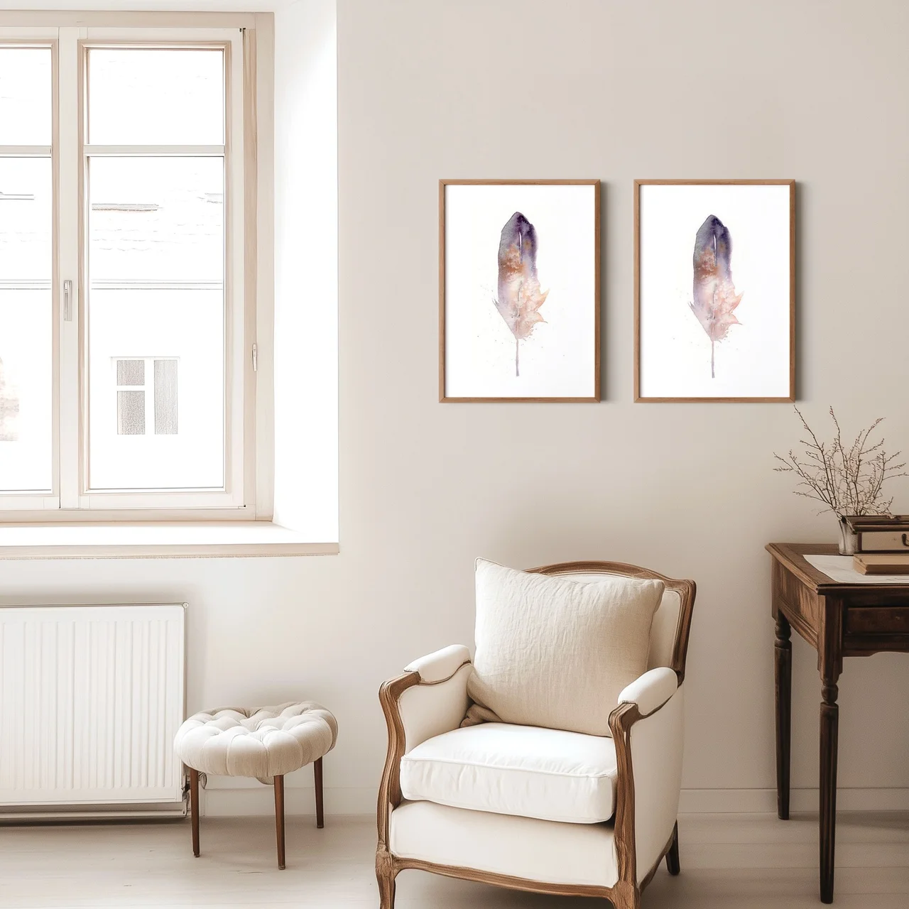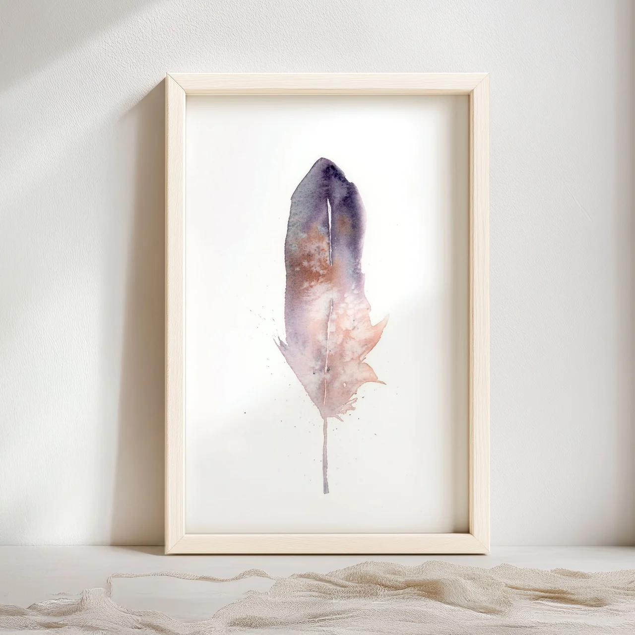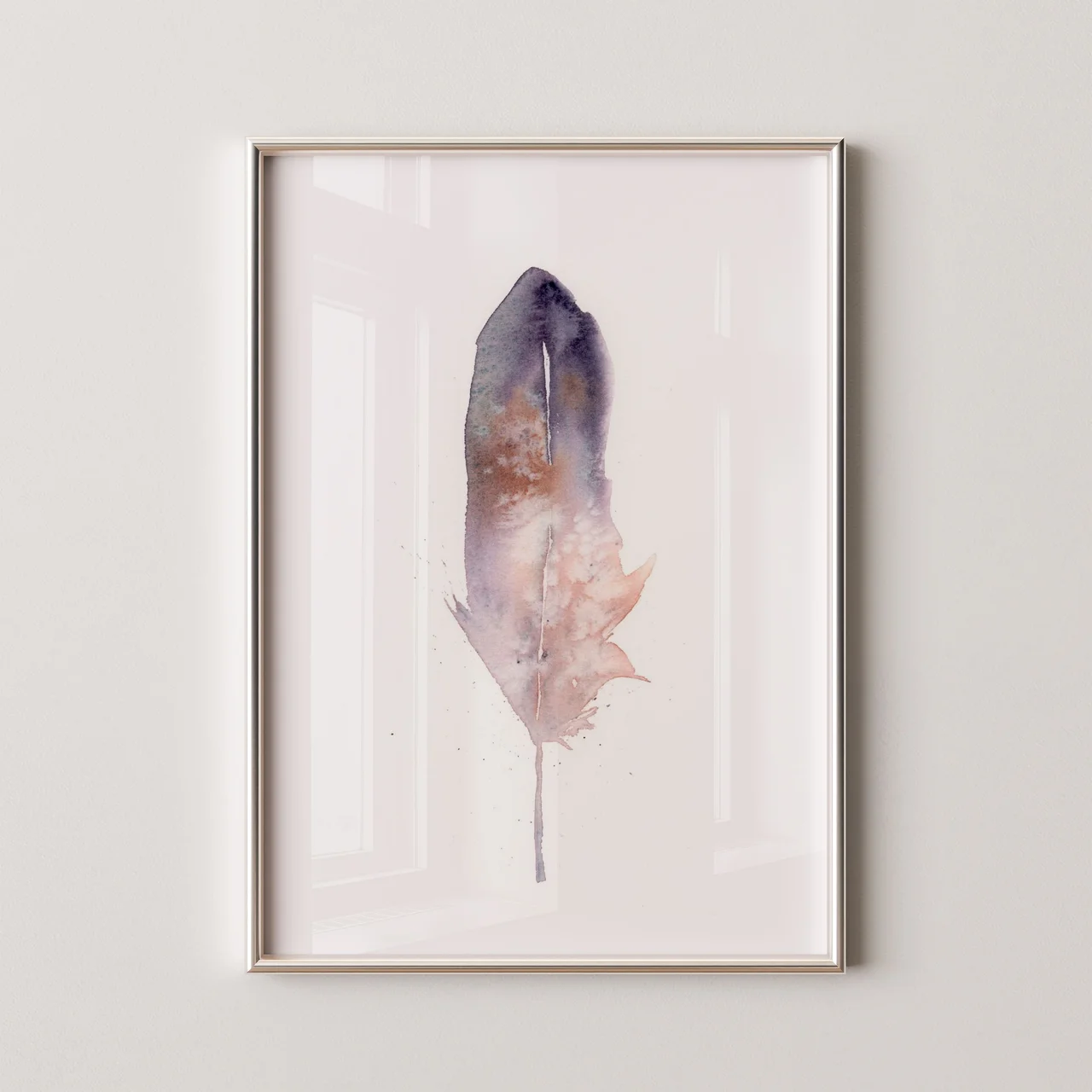 As I painted this feather, I chose a gentle palette of soft purples and warm browns that melt into each other, like the sky at dusk. Using delicate watercolor washes and intentional splatters, I allowed the colors to blend and… read more