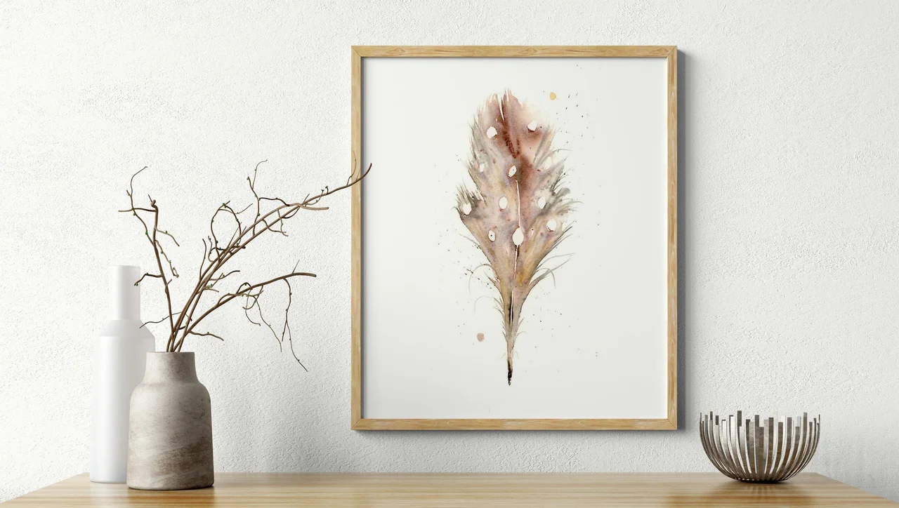 In this painting, I embraced the soft, earthy tones that hand-made pigment Rocky Mountain #5 offers, ranging from warm browns to dusky mauves, to give the feather a natural, grounded presence. The fluid transitions and gentle layering of watercolors highlight the feather’s delicate texture, while the subtle splatters and drips bring an organic, spontaneous energy to the piece. As I painted, I felt a soothing sense of clarity and strength, hoping it inspires the viewer to feel the same balance and resilience within themselves. — Shayna, December 2023