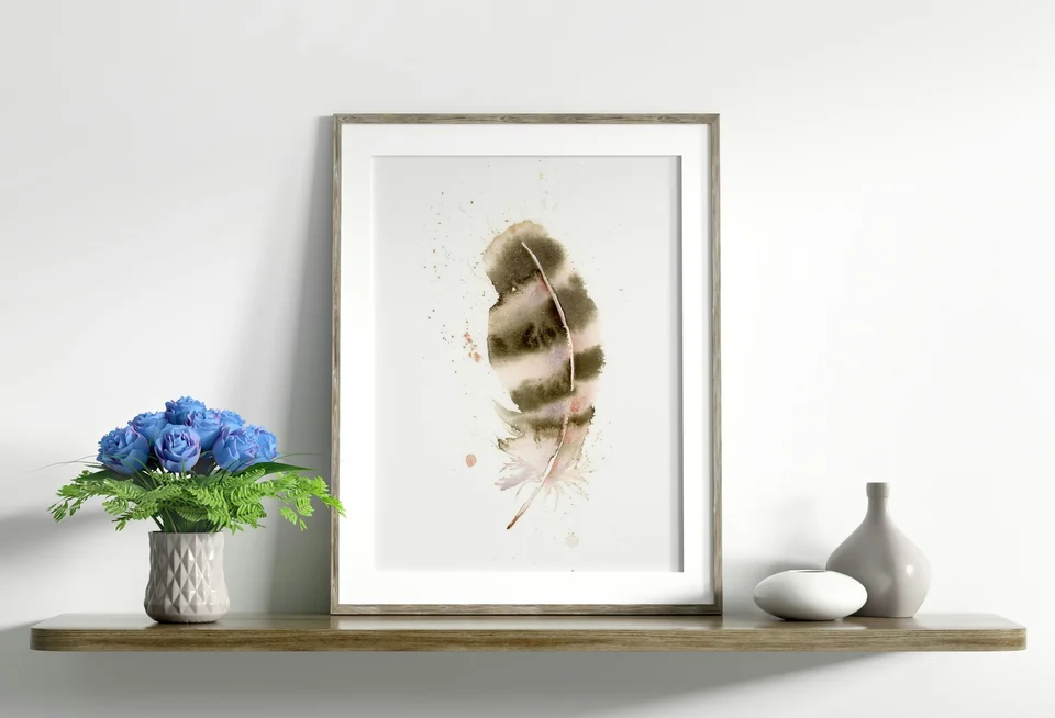 This original watercolor is 5" x 10". The Saunders Waterford 140# watercolor paper is mounted on a wood panel. Finished with archival spray varnish and hand buffed with cold wax medium. Custom framed and ready to hang.