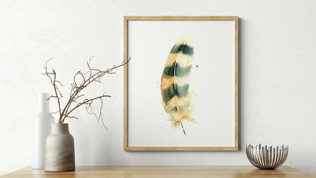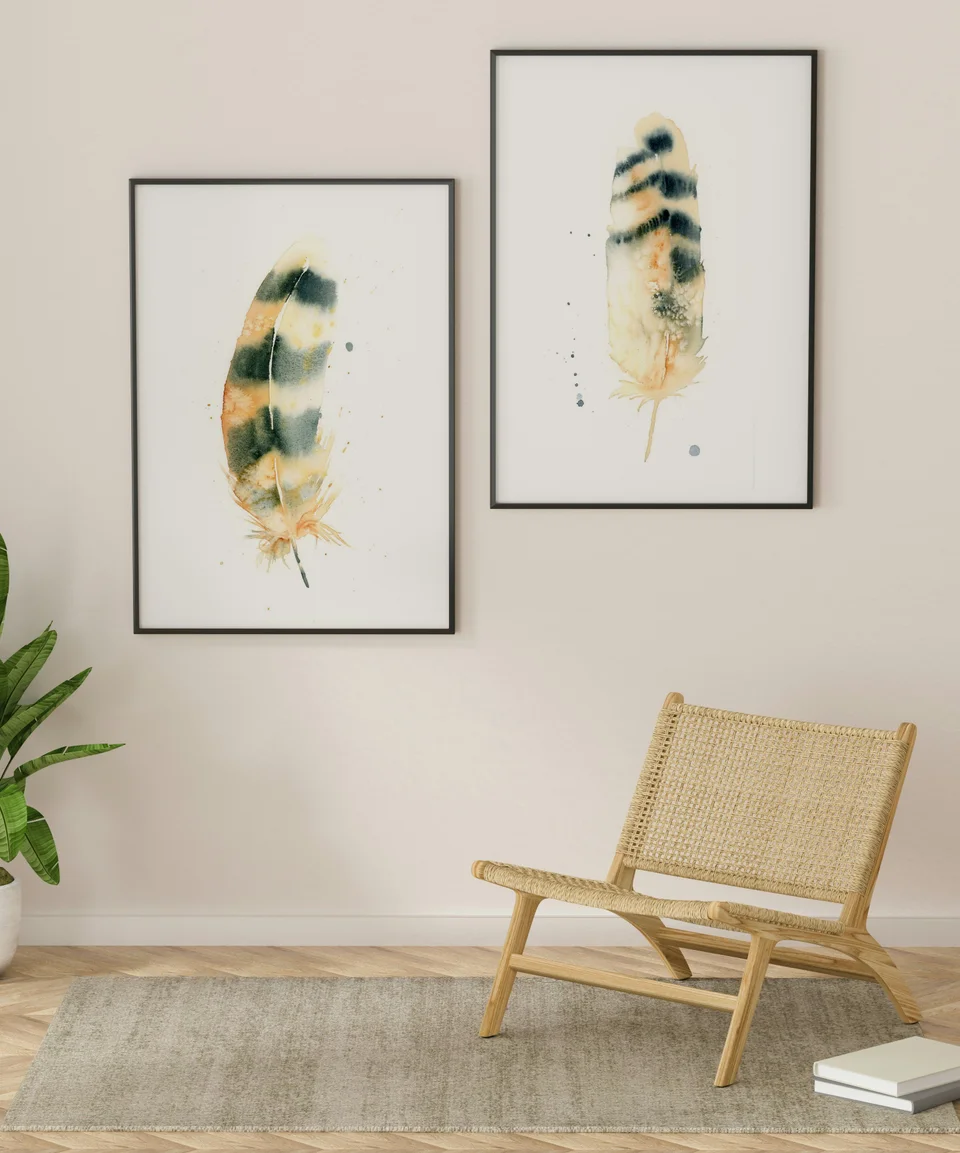 In creating this piece, I carefully chose soft hues of earthy green and gentle amber, letting each color bleed and blend with the other like a gentle dance. The feather is formed through delicate, sweeping brushstrokes, capturing a sense of… read more