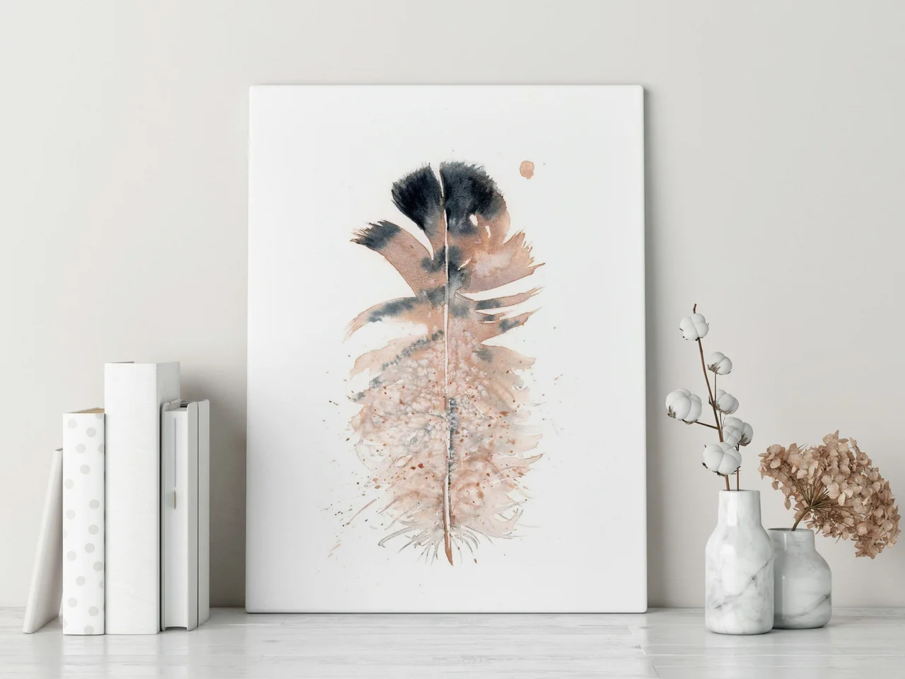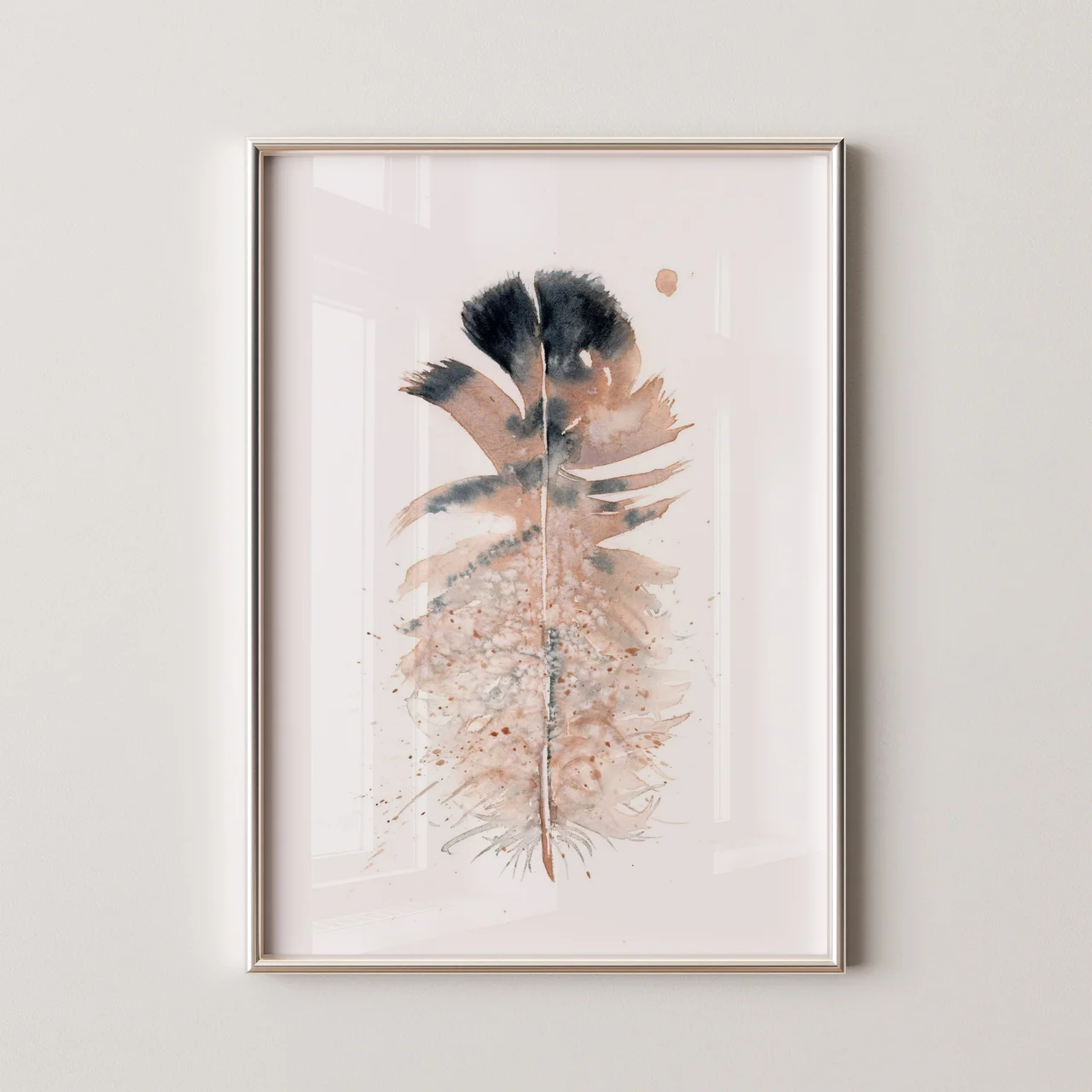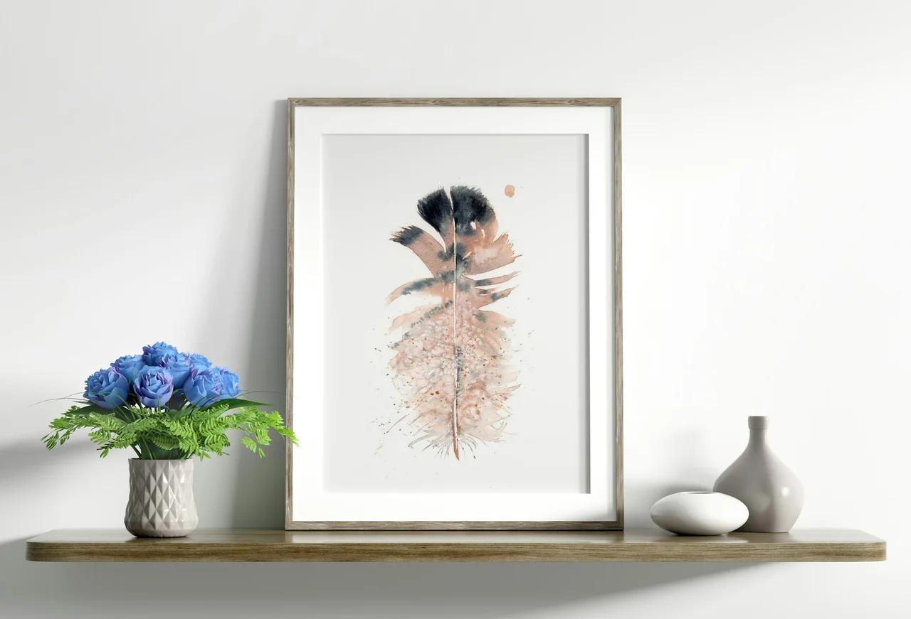 In creating this piece, I used my hand-made pigment, Rocky Mountain #8, to blend gentle earth tones with deep charcoal, capturing a sense of calmness and balance. The flowing edges and delicate splatters mimic nature’s unpredictability, while the central feather… read more