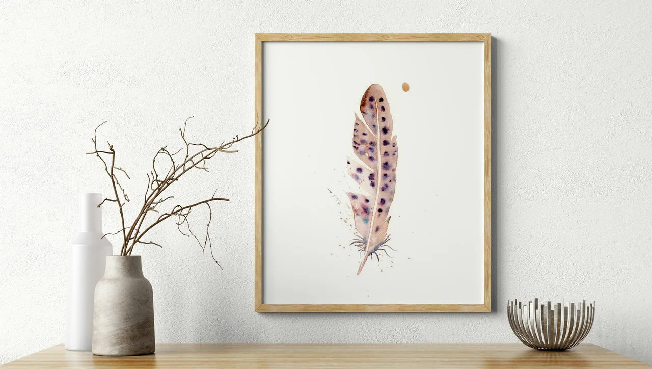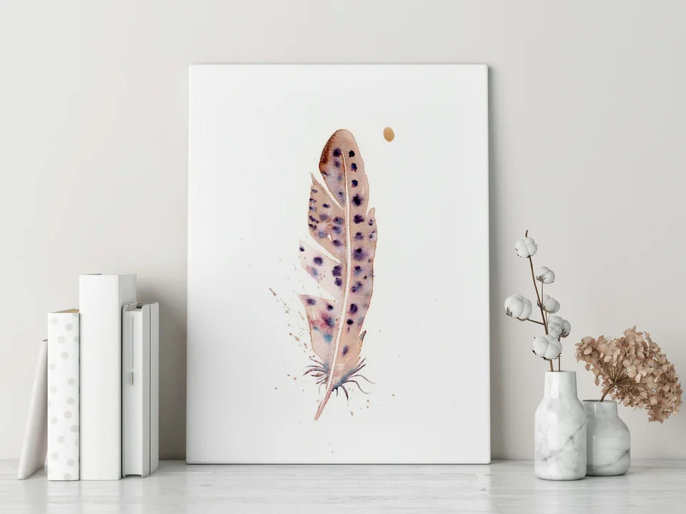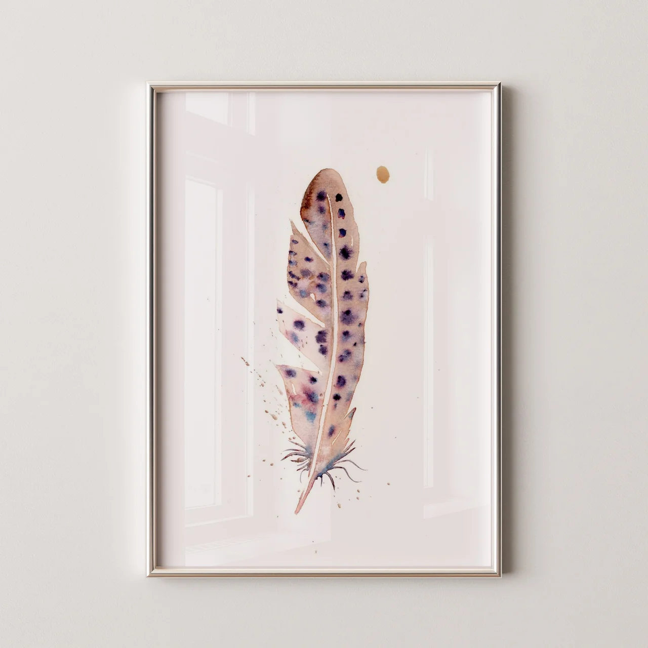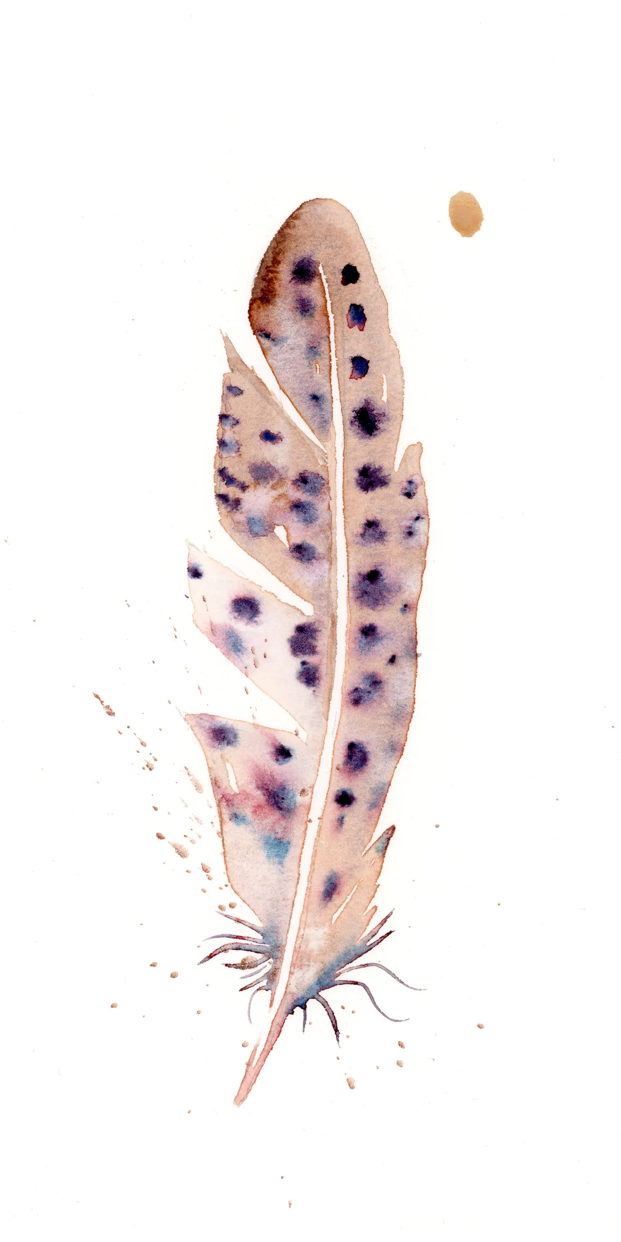I chose to use the hand-made pigment Rocky Mountain #6 for its earthy yet vibrant hues, giving the feather soft blues and warm browns that merge seamlessly across the surface. I enjoyed creating gentle transitions and delicate layers with varied brushstrokes, allowing the colors to dance across the feather's form. The subtle splatters and wisps suggest motion and renewal, capturing a sense of harmony and tranquility with each brushstroke. — Shayna, February 2024