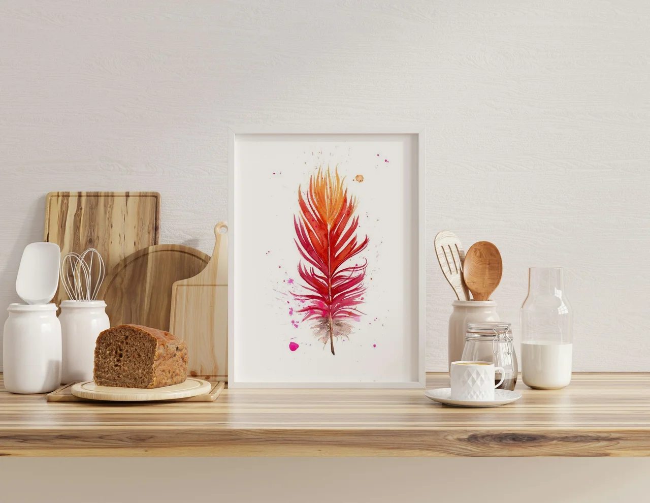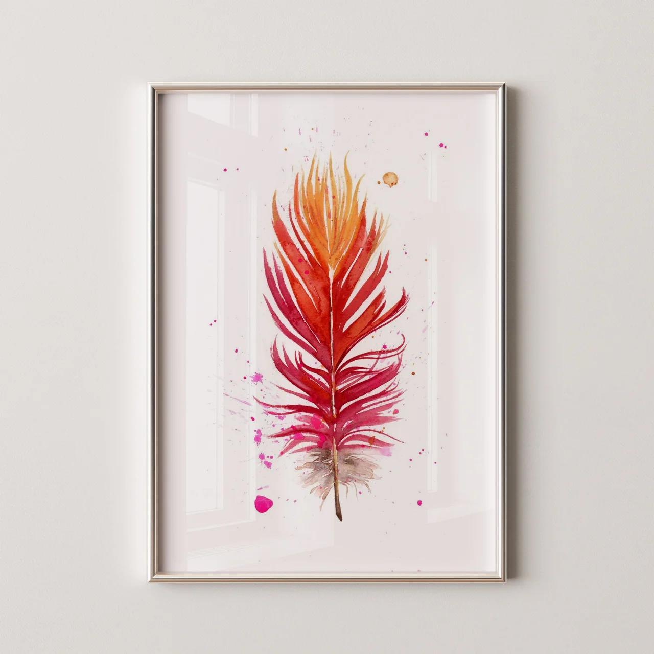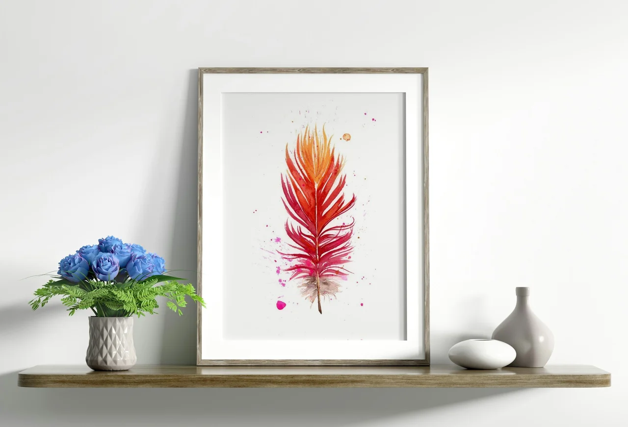 In creating this piece, I chose a vibrant palette of reds and oranges, blending into gentle pinks, to inspire feelings of warmth and renewal. The feather's form is captured with fluid brushstrokes, tapering into delicate edges that suggest a gentle… read more