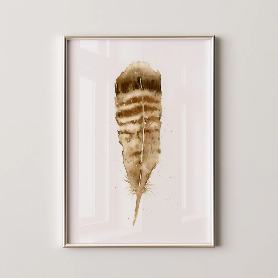 In this painting, I let the gentle earth tones flow and blend, creating soft, calming shades of brown that mimic the natural beauty of a feather. The subtle transitions between light and shadow give it a sense of depth, while the delicate edges and light drips add a touch of spontaneity. With each brushstroke, I aimed to capture a moment of quiet reflection, inviting a sense of upliftment and calmness into the viewer's heart. — Shayna, December 2022