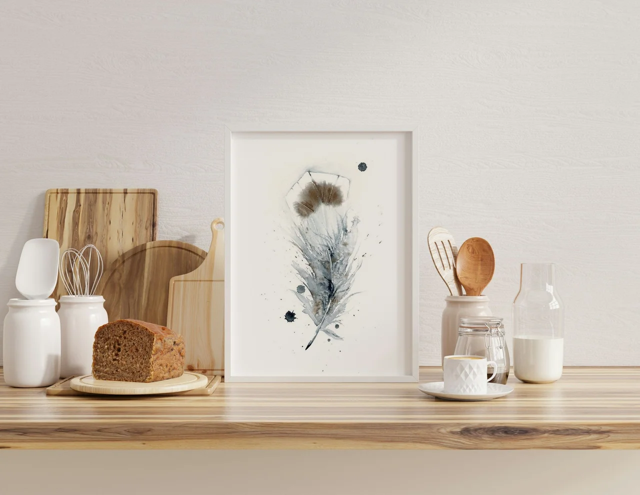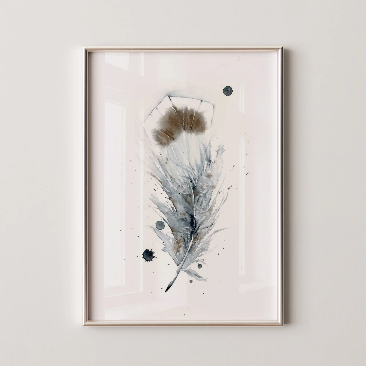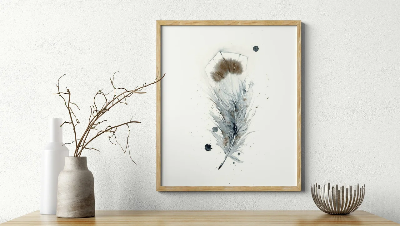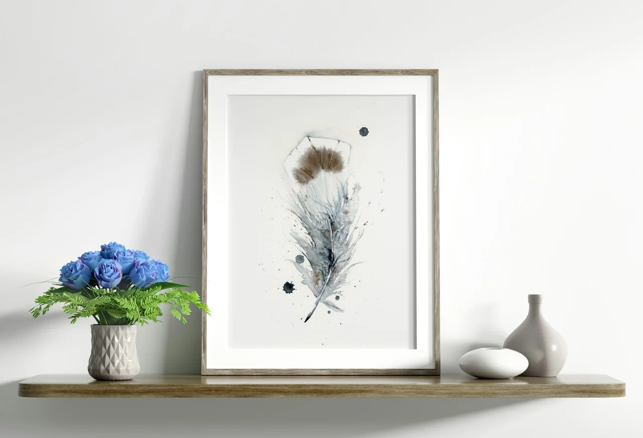 In this painting, I embraced the delicate interplay of muted grays and soft browns to create a feather that seems nearly weightless against the white background. The gentle splatters and subtle drips bring an unexpected energy, capturing the natural elegance… read more