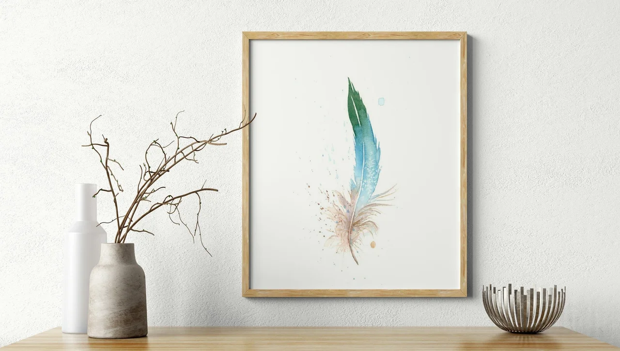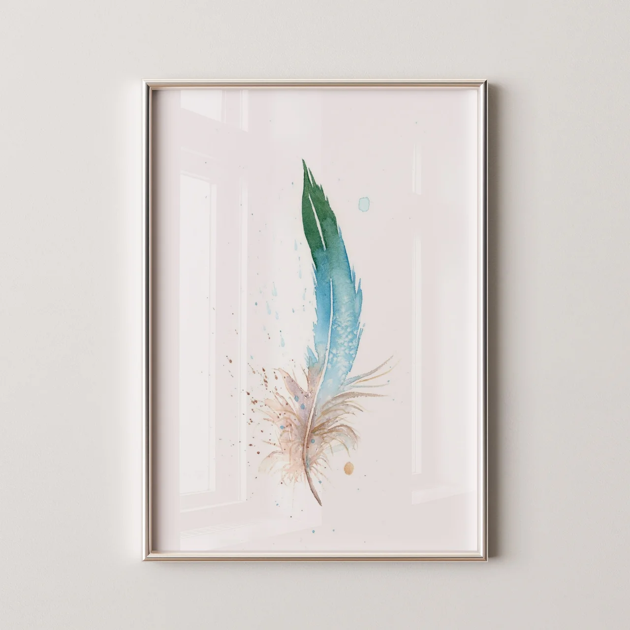 I gently layered handmade Rocky Mountain #6 pigments to create this piece, blending soft greens and blues with warm, earthy tones. The feather's edges are delicately defined, yet they flow into each other with a seamless transition, giving a sense… read more