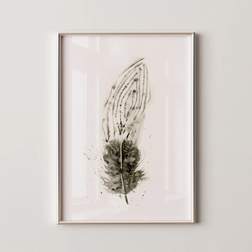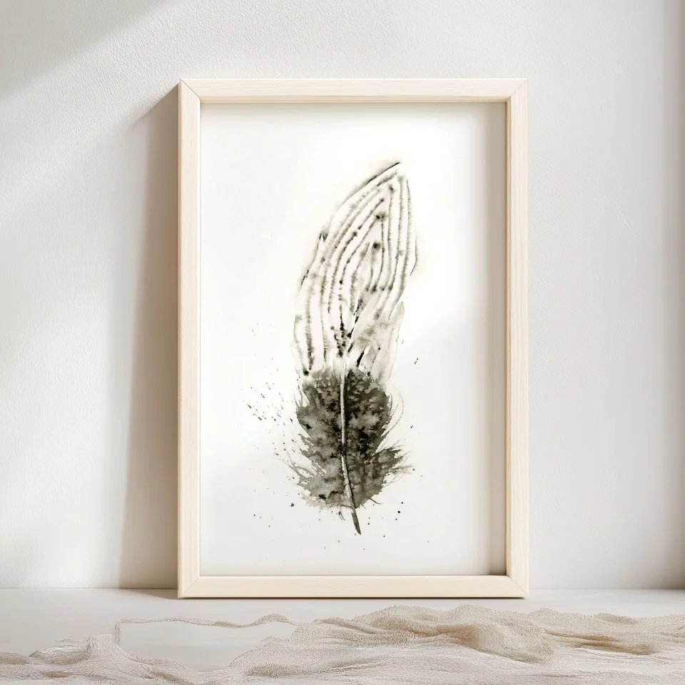 In creating this painting, I chose a monochromatic palette of soft blacks and grays, allowing the gentle transitions and delicate feather details to breathe. The subtle brushstrokes and careful layering bring the feather to life, with splatters and drips giving… read more