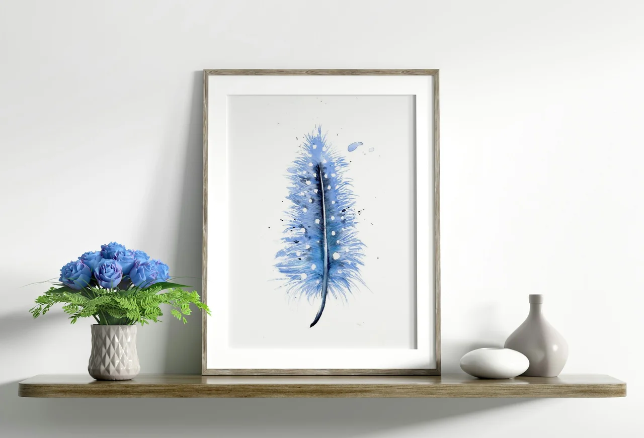 I chose a palette of cool blues, allowing them to flow and blend naturally to capture the gentle yet assertive beauty of a single feather. Using soft, sweeping brushstrokes, I layered the watercolor to create a delicate texture that transitions… read more