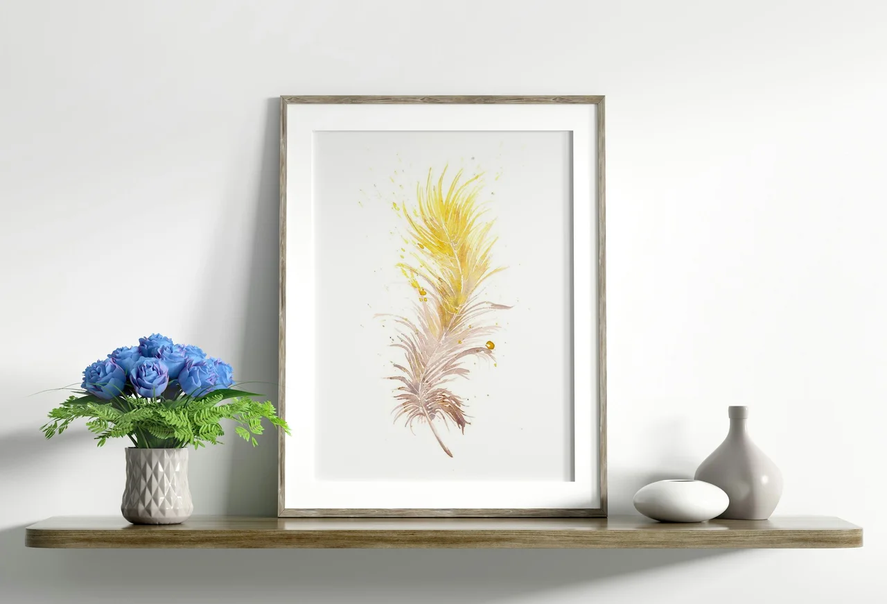 In this painting, I used soft yellows and gentle browns to create a feather that dances lightly against a white background. I enjoyed using subtle transitions and fluid brushstrokes that blend effortlessly, with delicate splatters and drips adding a lively… read more