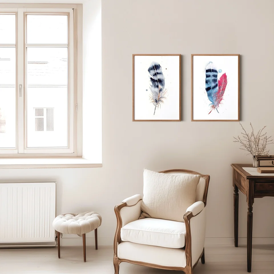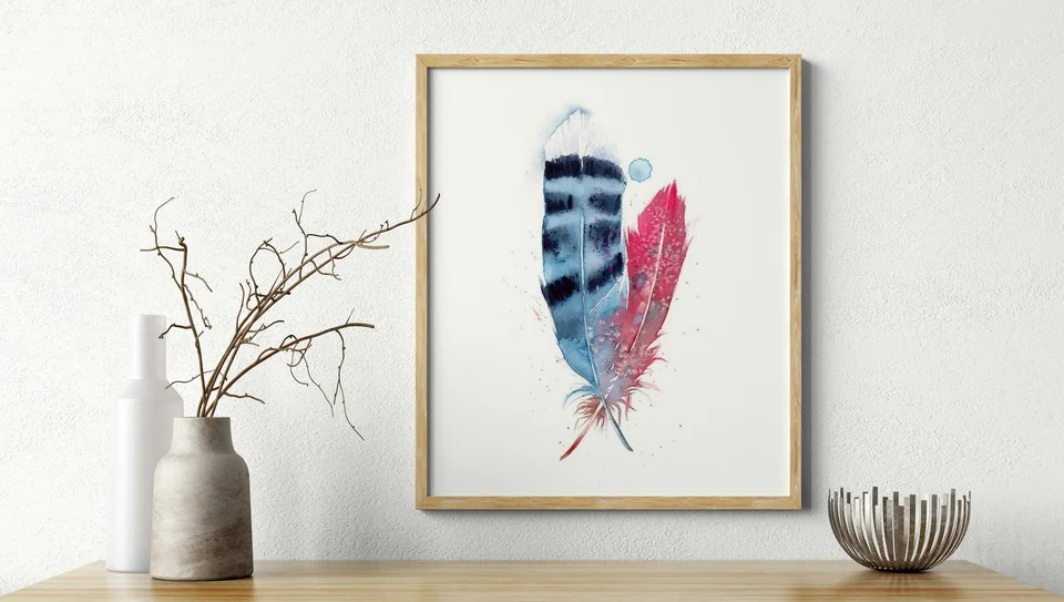 In creating this painting, I focused on the contrasting yet harmonious blend of vibrant red and calm blue, using watercolors with a soft touch to allow these colors to bleed gently into one another. The feathery strokes capture delicate movement… read more