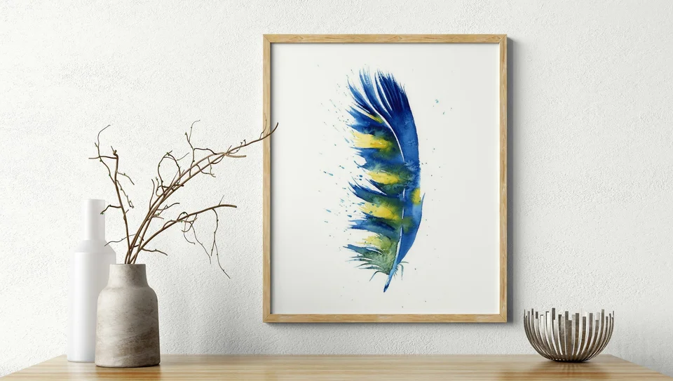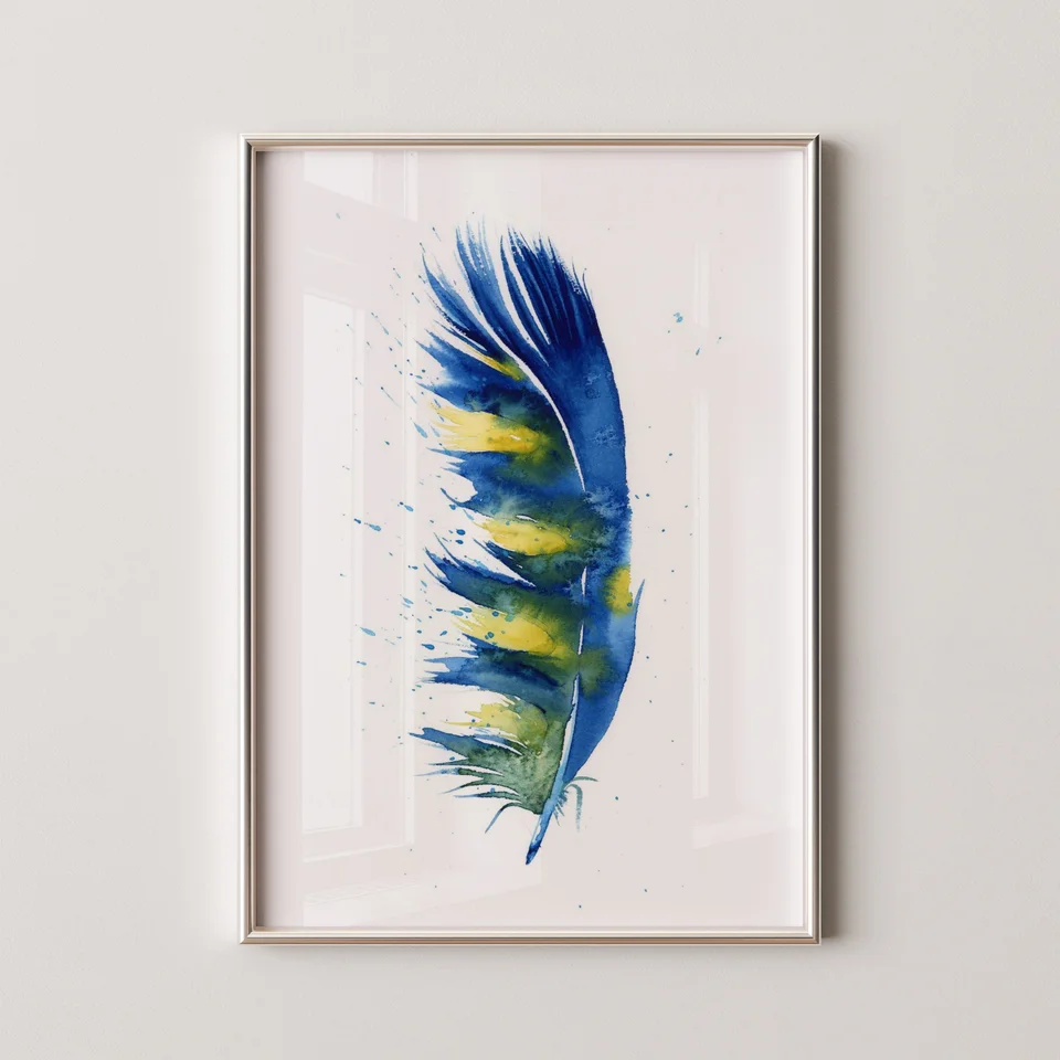 I used deep blues and vibrant yellows to create a sense of harmony and connection within this feather. The transitions are smooth, with carefully layered watercolors that blend naturally yet maintain a gentle contrast. By allowing the paint to splatter… read more