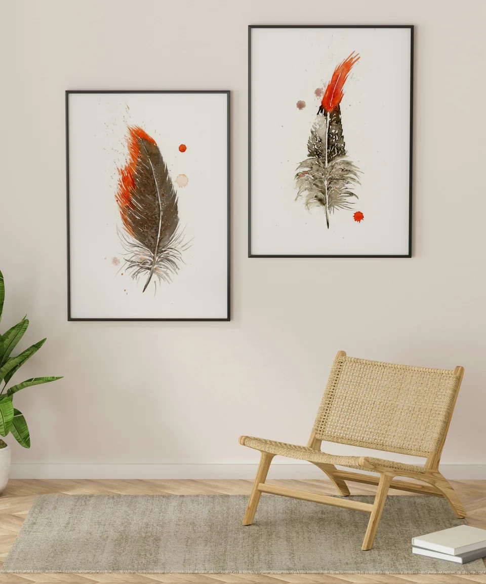 In this painting, I used rich browns and fiery oranges to bring the feather to life, letting the bold hues seep outward with a delicate touch. The soft blending of colors creates a vibrant edge, capturing a feeling of resilience… read more