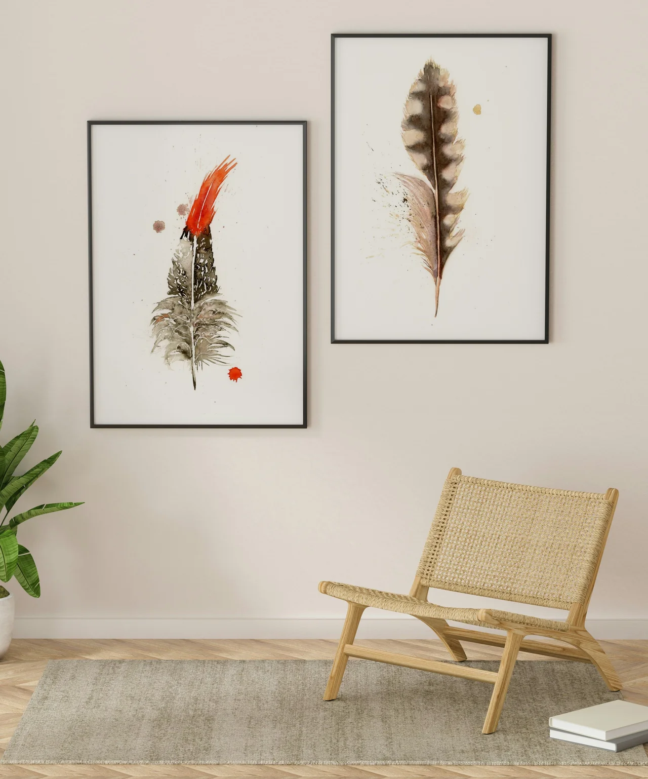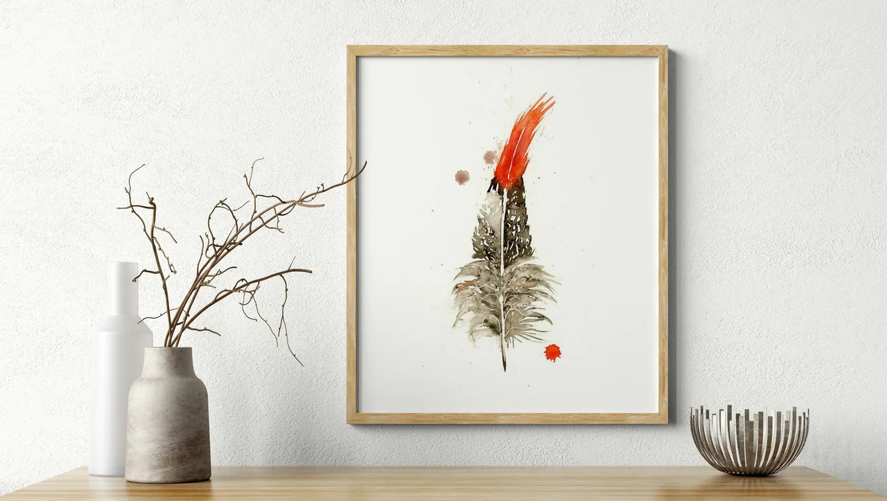 In this painting, I chose a soft, earthy palette with hints of vibrant red to draw the eye. The delicate feather is created with gentle brushstrokes, layering shades of gray and warm browns to capture its texture. The bold red… read more