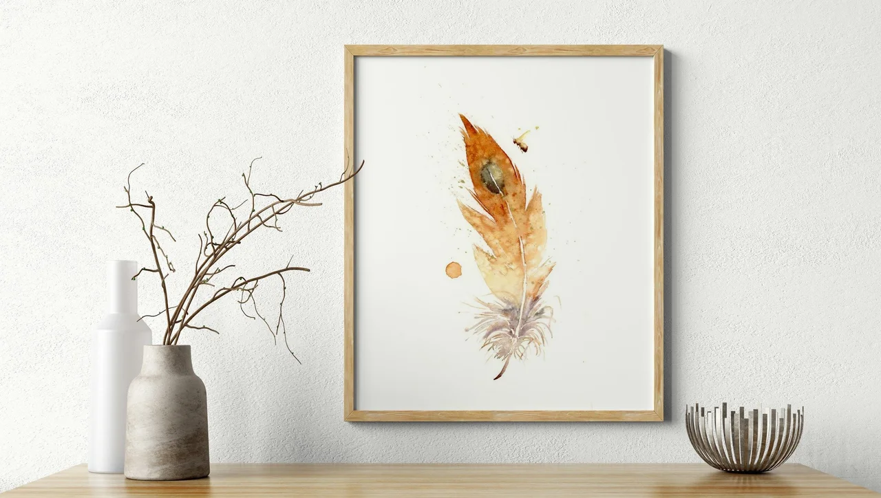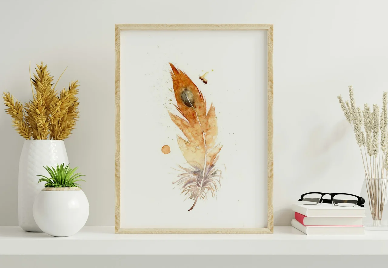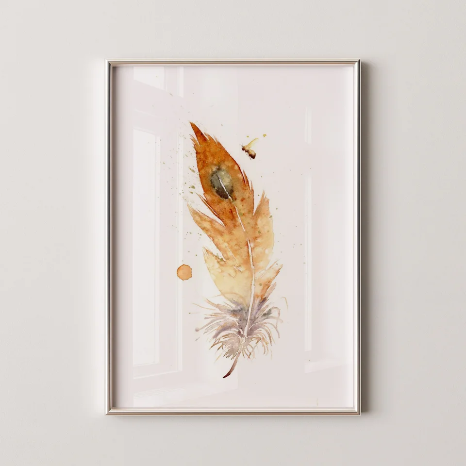 In this painting, I embraced earthy tones, letting the warm oranges and browns gently transition into soft greys and hints of olive. The feather, with its delicate brushstrokes and splashes, seems to float, a blend of precision and freedom. By… read more