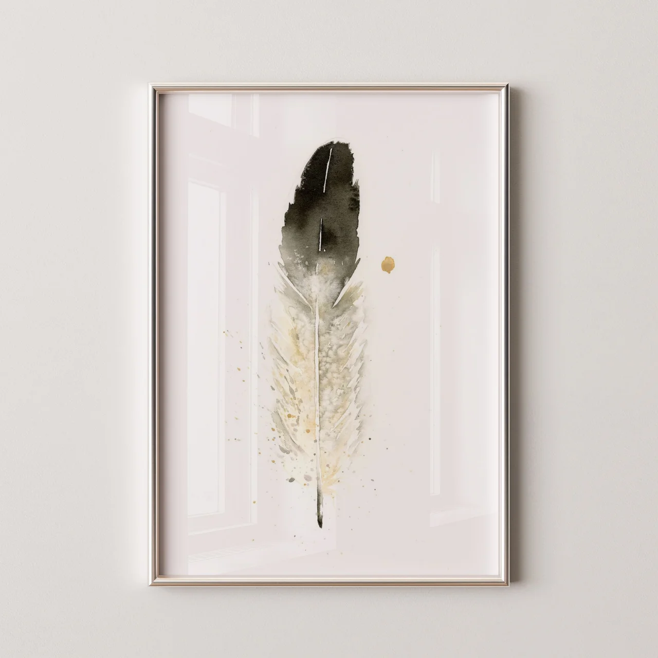 I used my hand-made pigment, Minnesota Lake #1, to create a delicate feather that seems to float on the paper with soft transitions from rich charcoal to gentle sandy hues. Layering the paints, I let the brushstrokes guide me, creating an organic movement that feels both fragile and strong. The subtle splatters and drips add depth, capturing a moment of quiet strength like a whisper that carries more than words can say. — Shayna, July 2024