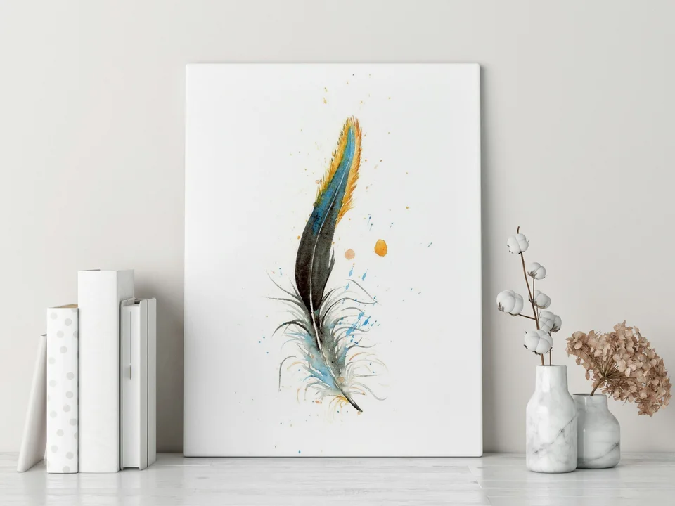In this piece, I used a soft palette of blues and oranges to convey a sense of calm against a lively background. The feather's delicate brushstrokes give it a sense of motion, as if it might take flight at any… read more