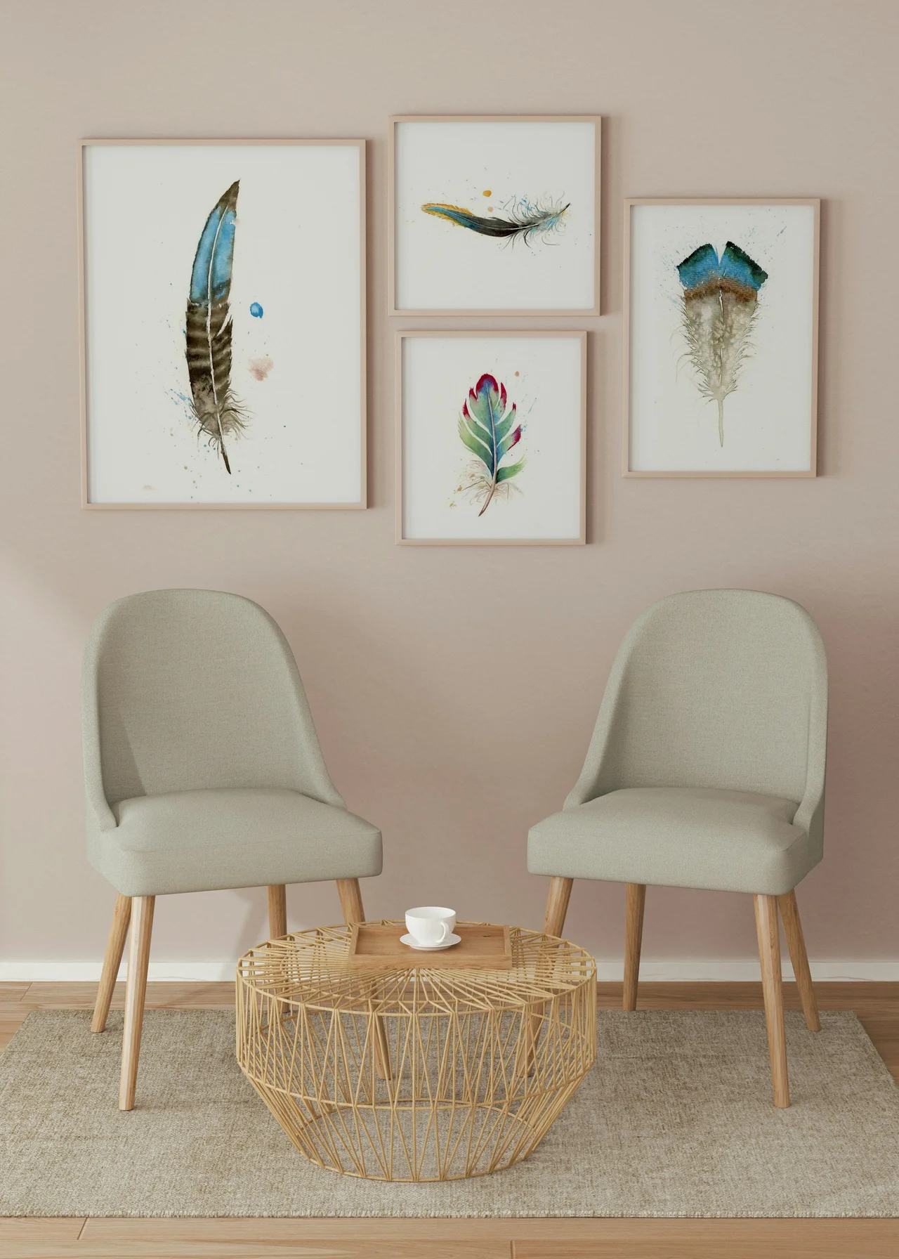 I chose to use a soft, gentle blue paired with earthy browns to create the feather in this piece, letting the hues merge and flow with delicate brushwork. The feathery edges and subtle splatters invite a sense of calm timelessness,… read more