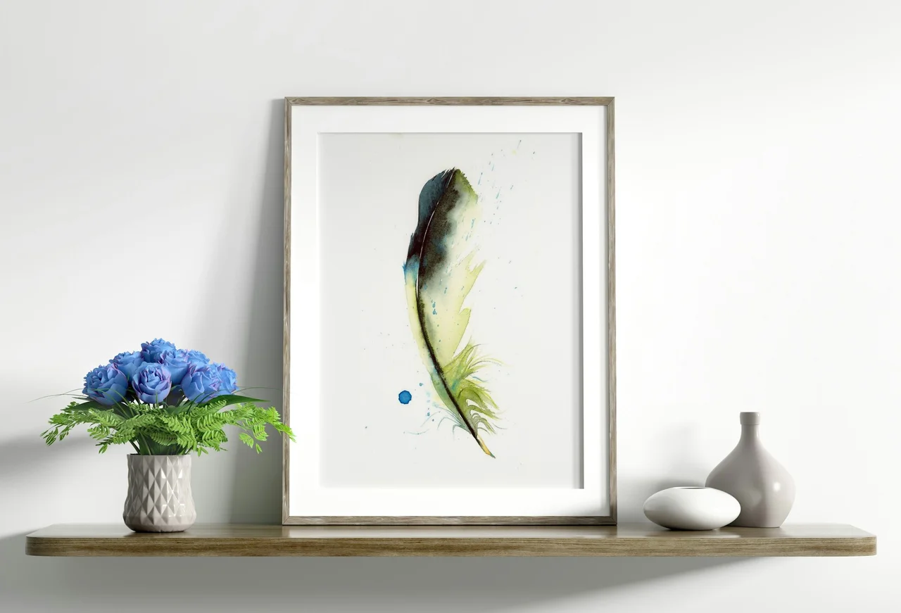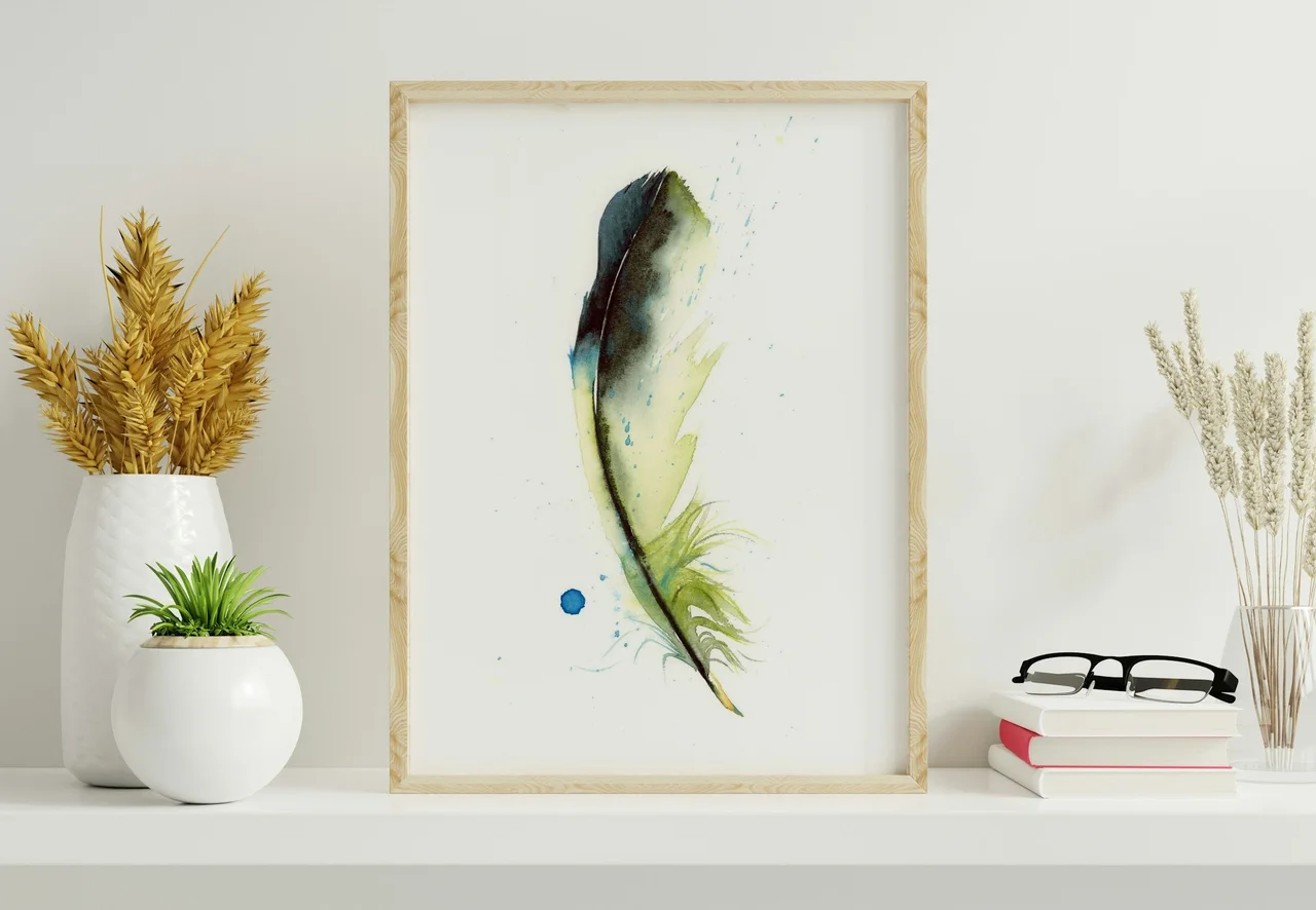In this painting, I embraced the fluidity of watercolor to highlight the gentle grace of the feather. The soft transitions from vibrant greens to deep blues capture both lightness and depth, with the subtle splatters and drips adding a spontaneous… read more