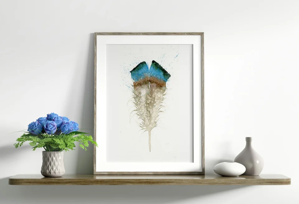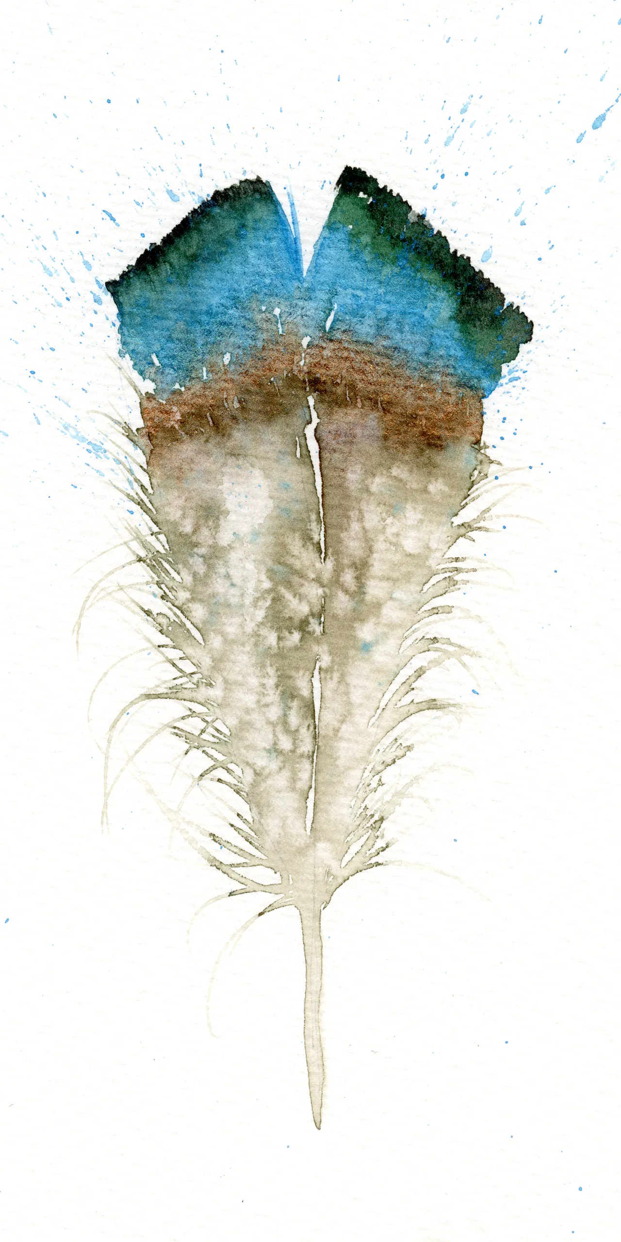 In creating this piece, I embraced the fluidity of watercolor, allowing the deep blues and rich browns to flow together, capturing the strength and grace of the feather. The soft transitions and delicate feathering strokes bring out an air of elegance, balanced by the bold splatters that suggest movement and freedom. I wanted this painting to reflect a sense of inner strength and clarity, a reminder that even the most intricate details can hold great power and wisdom. — Shayna, December 2022