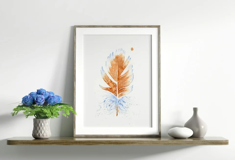 In this piece, I used a warm, earthy brown pigment called Rocky Mountain #6, which I crafted by hand, complemented by soft blues to create a delicate feather-like form. I applied gentle brushstrokes to convey a sense of grace and… read more