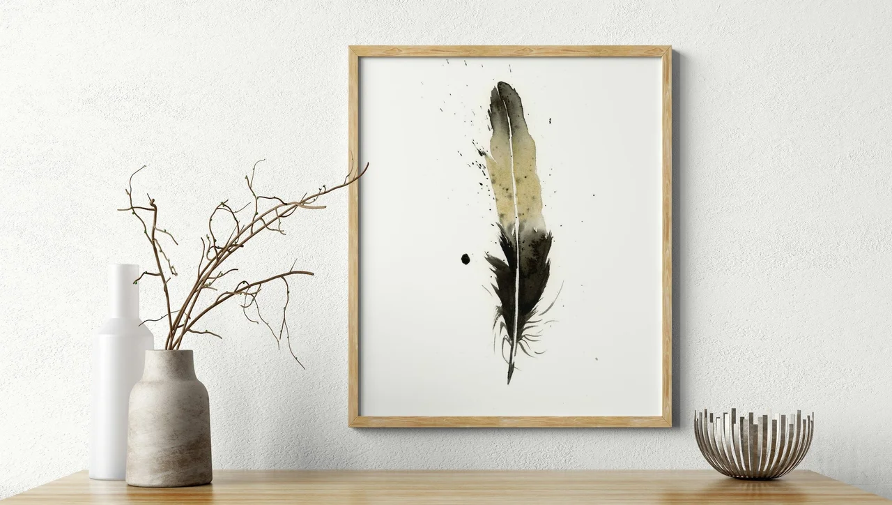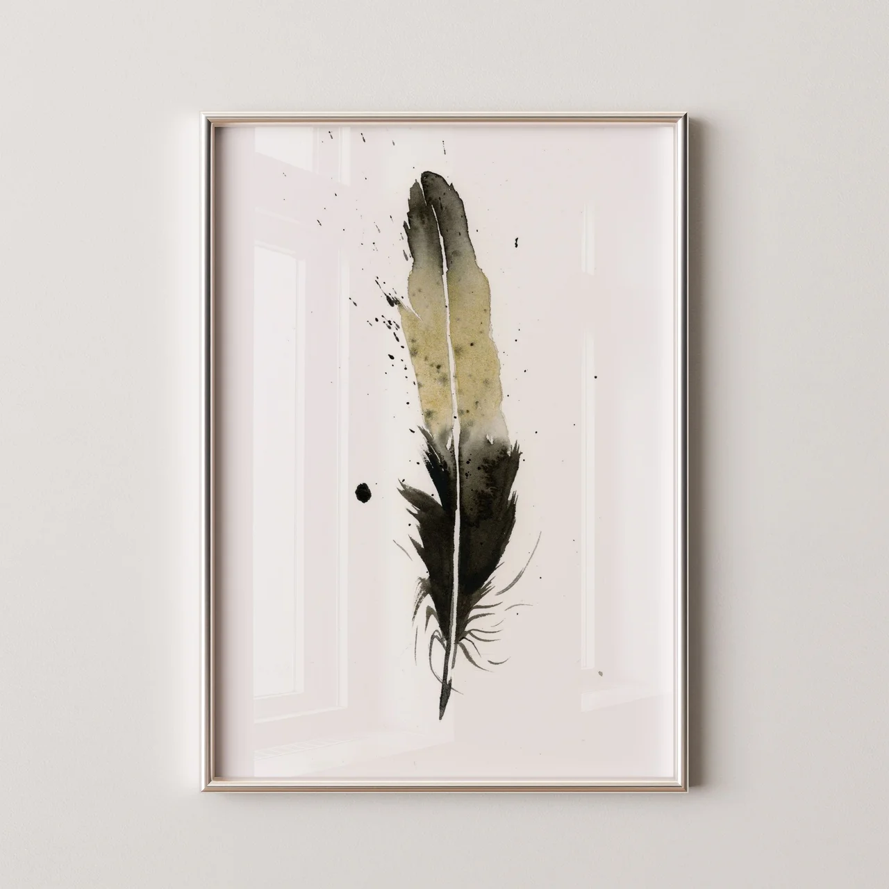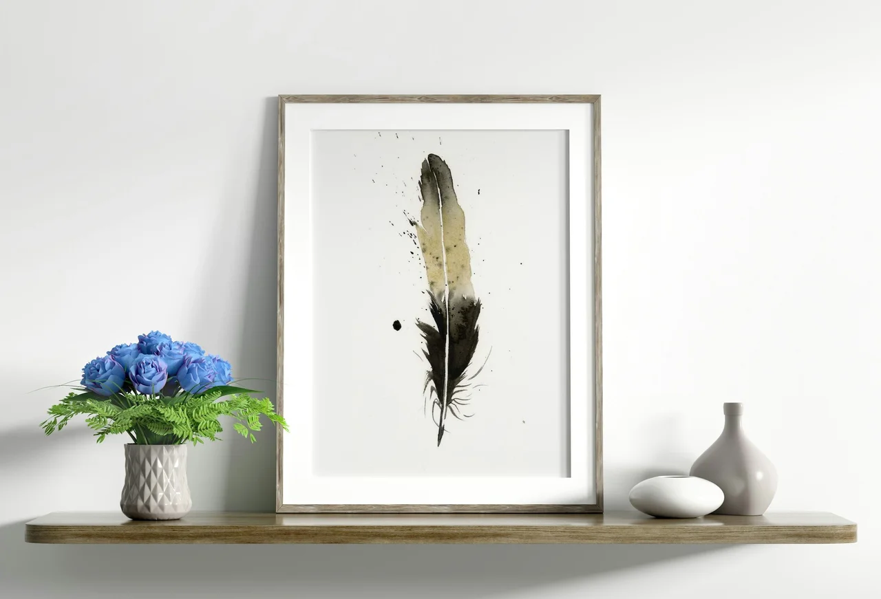 In this piece, I brought the feather to life using soft transitions of charcoal blacks and warm earth tones created from my hand-made Marshall Fire #1 pigment. I used gentle brushstrokes to capture the delicate edges and natural flow, allowing some splatters and drips to hint at spontaneity and movement. This painting represents a connection to something greater, inviting viewers to find their own sense of peace and clarity. — Shayna, September 2024