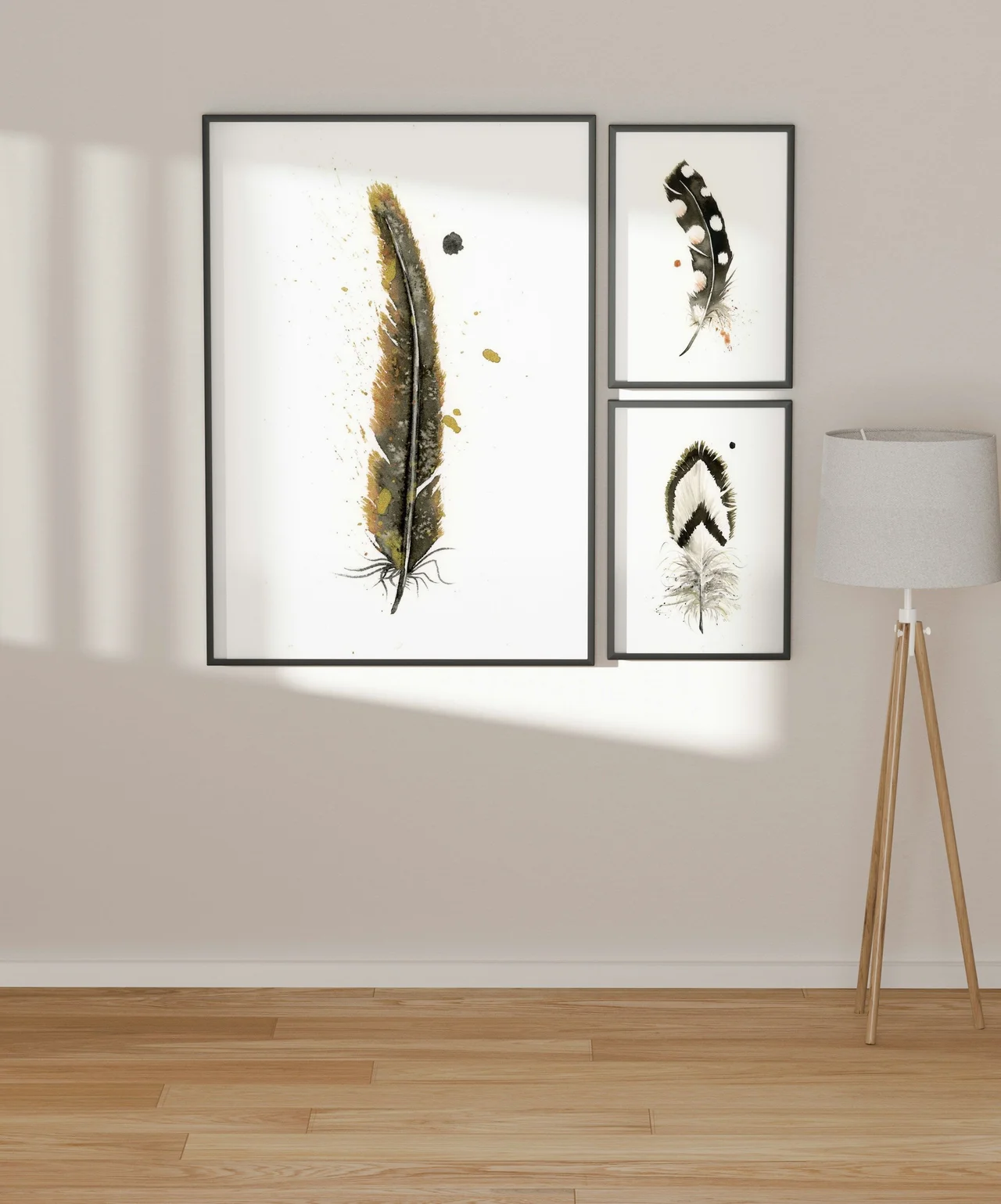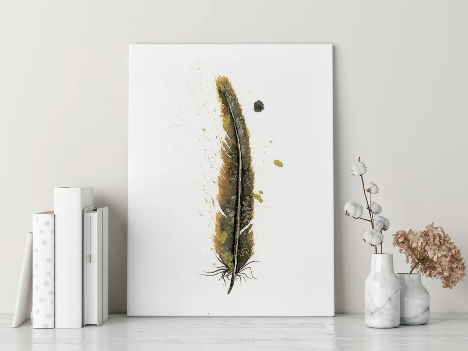I carefully layered the earthy tones of handmade pigment Marshall Fire #1 to capture the soft intricacy of a single feather. The feather's dark spine contrasts with the softer edges where color gently fades, while subtle splatters and drips add… read more
