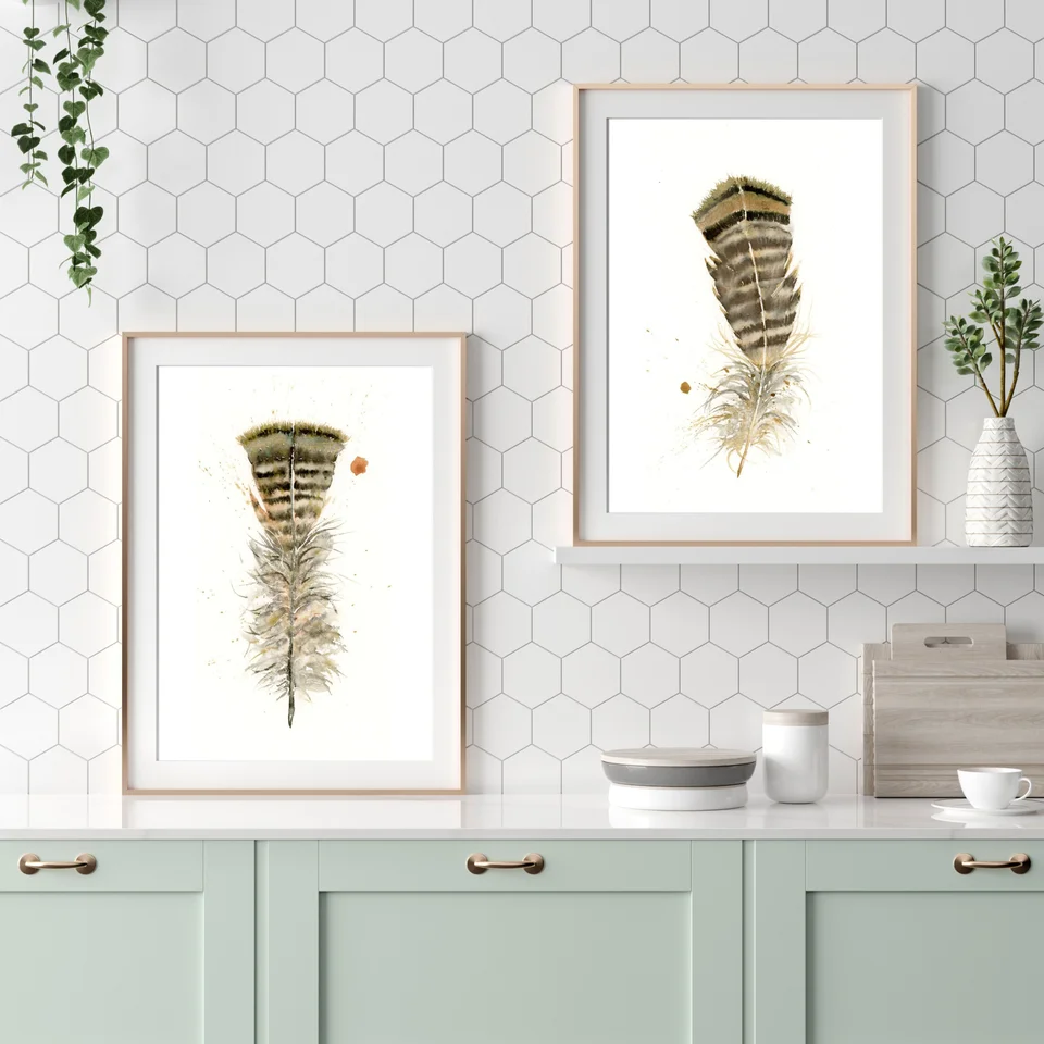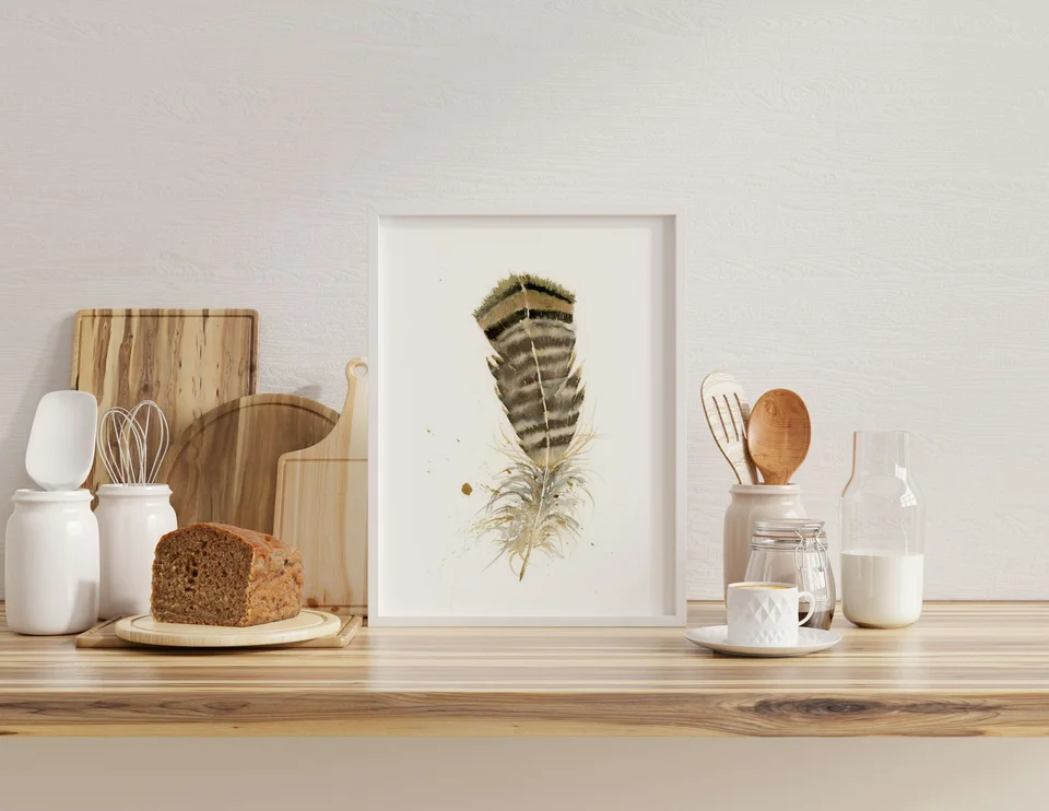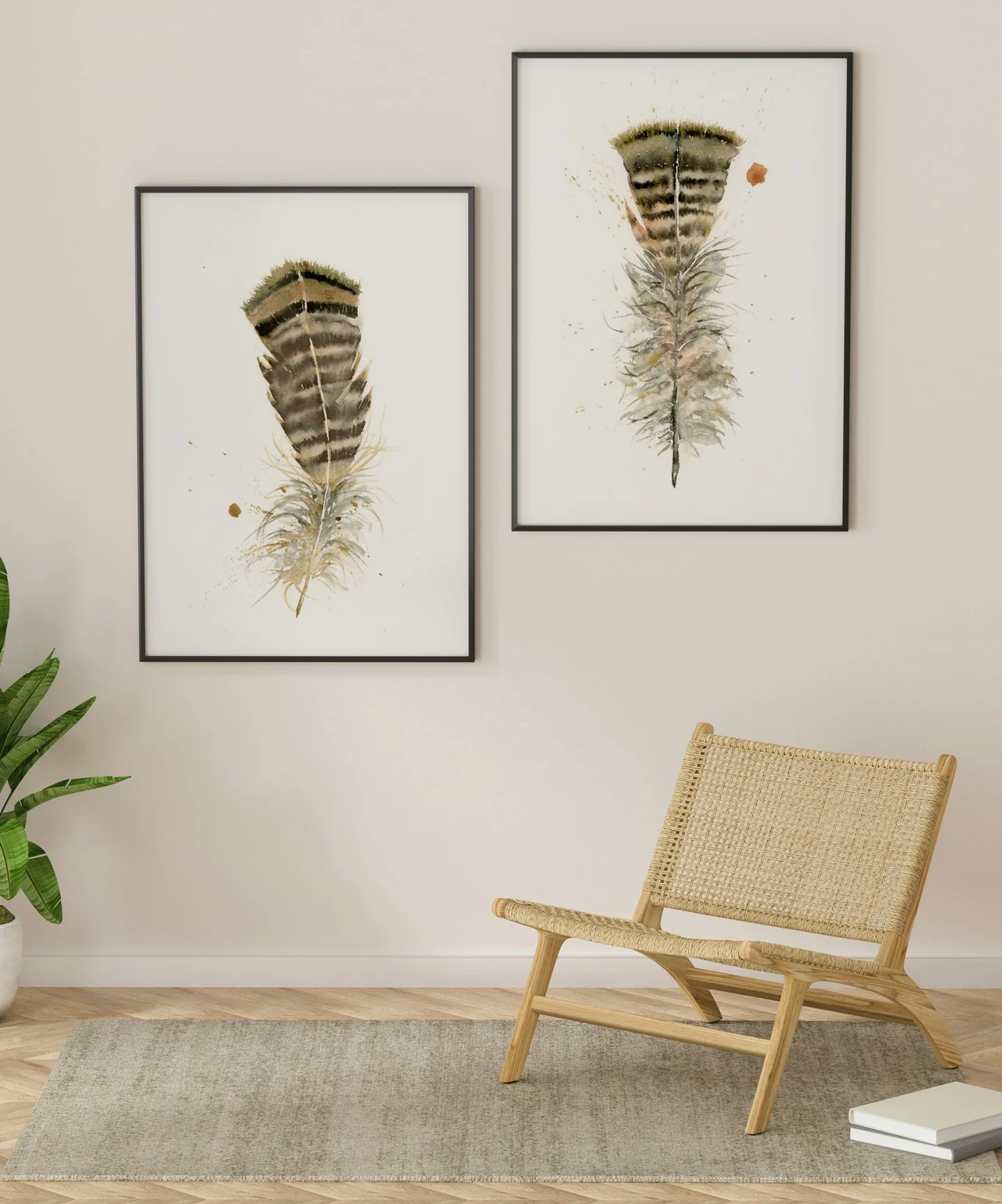 In this piece, I used the hand-made pigment Vermont #1 to explore earthy tones that resonate with warmth and serenity. The feather's gentle browns and grays flow softly, with delicate transitions between the layers, giving a sense of softness and tranquility. I focused on fine brushstrokes and subtle splatters to capture the feather’s natural elegance, aiming to create a visual space that allows the viewer to breathe and find calmness amidst life’s complexities. — Shayna, September 2024