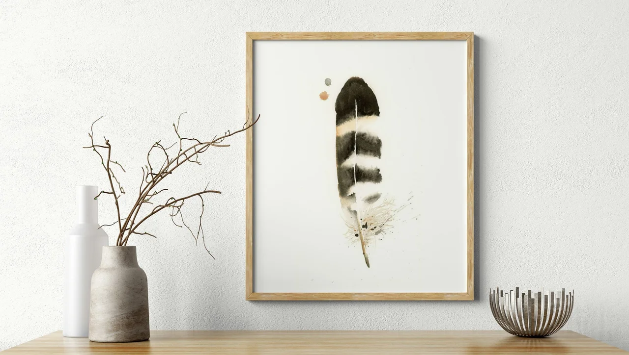 In this piece, I used my hand-made Rocky Mountain #6 pigment to achieve a balanced harmony of soft browns and deep blacks. The feather's delicate form is emphasized by subtle transitions and feathered edges, achieved with gentle brushstrokes and wispy… read more