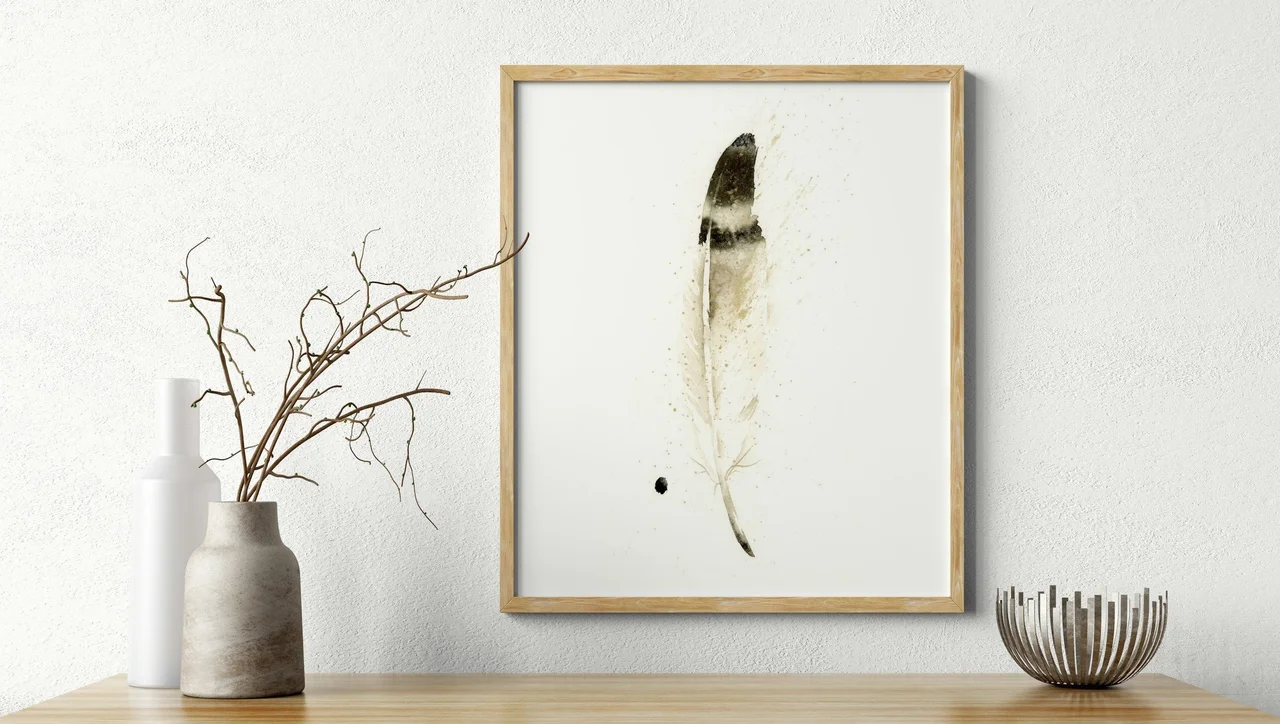 I chose to paint this feather using a delicate palette of earthy and muted tones, infused with my hand-made pigment, Marshall Fire #1. The gentle layering and soft transitions create a sense of movement, as if the feather could take… read more