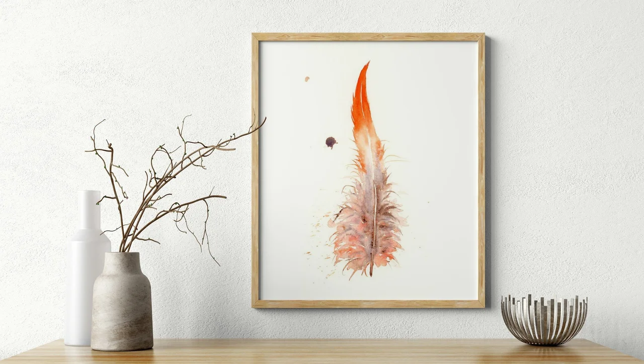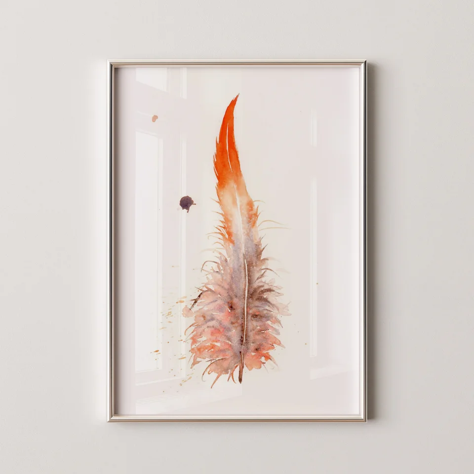 In this piece, I wanted to capture a sense of renewal through the gentle, warm tones of orange and soft grays. The feather's edges fade into the white background, creating a sense of lightness, while the varied brushstrokes lend a… read more