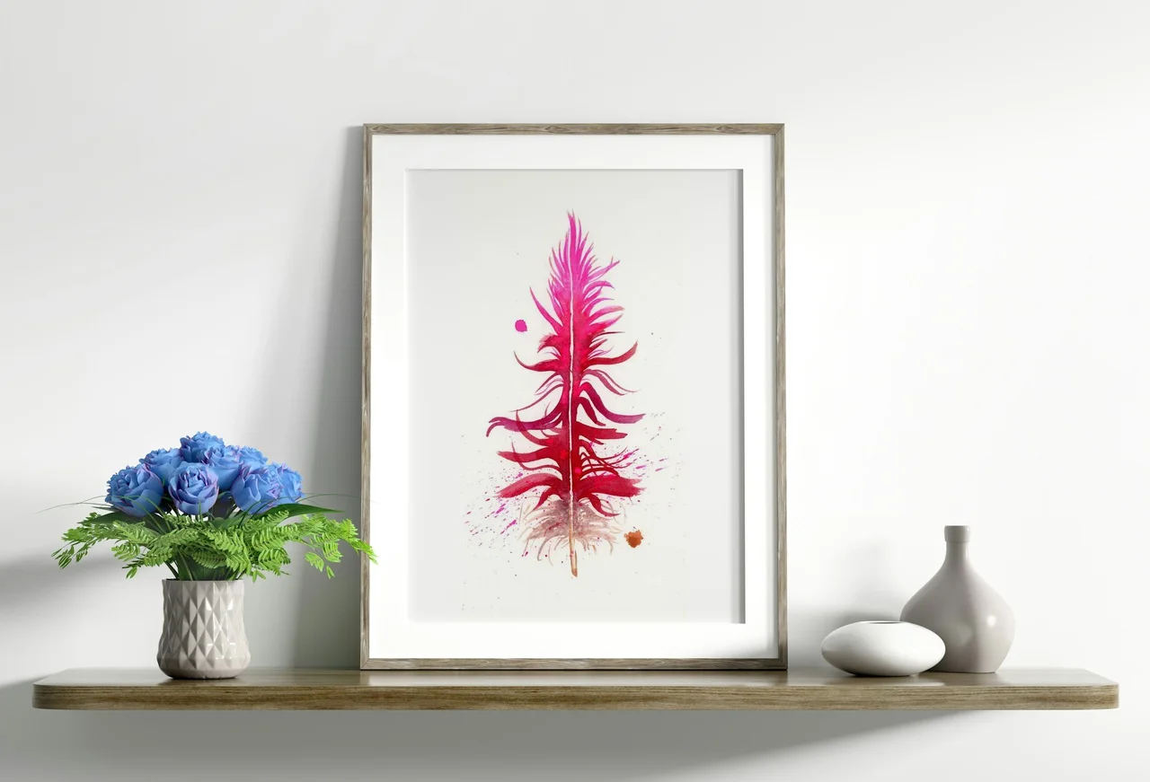 In this piece, I chose vibrant magentas and warm reds, crafted using my handmade pigment, Rocky Mountain #5. I love how the feather's fluidity emerges through layered brushstrokes and dynamic splatters, creating a sense of life and energy. Each stroke… read more