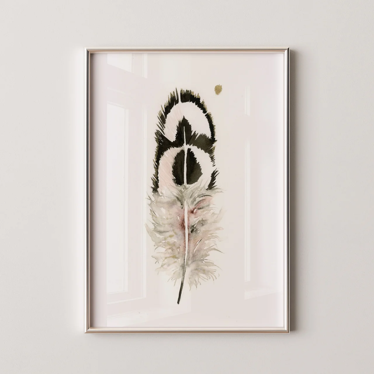 In this piece, I used a delicate palette of deep blacks, soft grays, and subtle pinks to create a feather that feels both fragile and strong. The gentle transitions and fine brushstrokes add a sense of movement, while the feathery edges and light washes give it a sense of softness. As I painted, I aimed to capture a feeling of standing tall and embracing life's challenges, no matter how delicate the moment might seem. — Shayna, October 2024